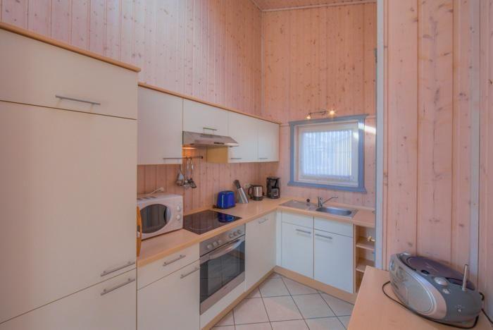 Das Ferienhaus im skandinavischen Stil bietet Platz für bis zu 4 Personen auf einer Ebene mit 2 Schlafzimmern, Wohn-/Essbereich, Einbauküche, Badezimmer mit Sauna und Whirlpool, Terrasse und PKW-Stellplatz.