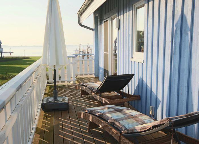 - zwei teilüberdachte Balkone, einer mit freiem Blick auf die Müritz und den Sonnenuntergang