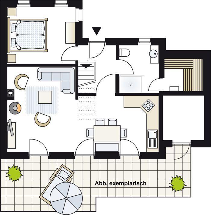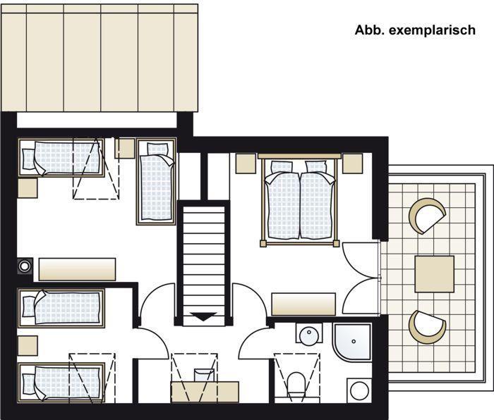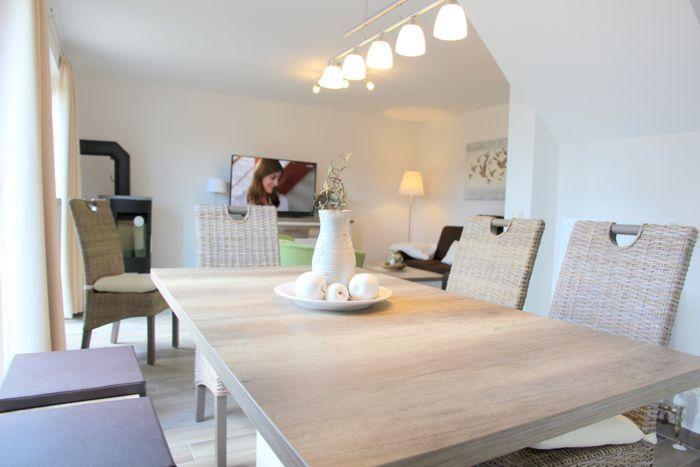 Das Ferienobjekt liegt in einer Reihenhaussiedlung und bietet Platz für bis zu 8 Personen mit 4 Schlafzimmern, 2 Badezimmern, Wohn-/Essbereich mit Kaminofen, Einbauküche, Sauna, Terrasse und PKW-Stellplatz.