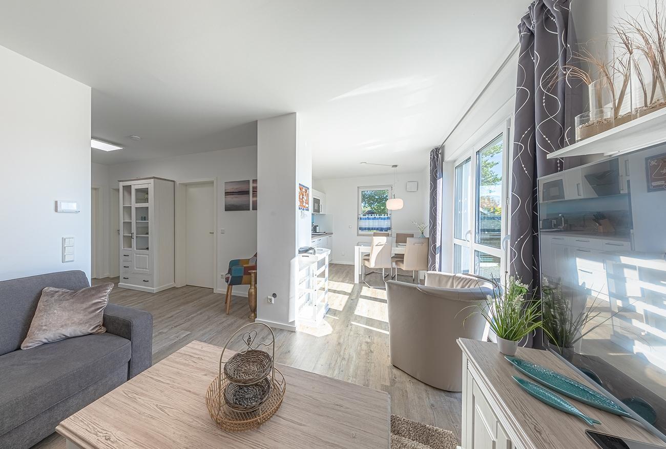 Das Apartment mit Blick auf die Marina bietet Platz für bis zu 4 Personen im oberen Geschoss unserer Skipperhäuser mit 2 Schlafzimmern, offenem Wohn-/Essbereich, Küchenzeile, Balkon, PKW-Stellplatz. Für den perfekten Start in den Urlaub sind die Betten bei Anreise frisch bezogen und eine Erstausstattung Handtücher liegt bereit. Die Energiekosten sind im Mietpreis inklusive.