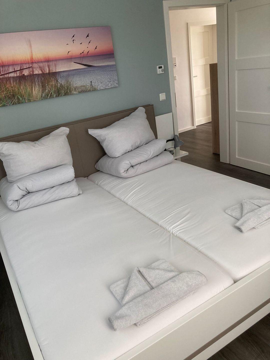 Das Apartment mit Blick auf die Marina bietet Platz für bis zu 4 Personen im Erdgeschoss unserer Skipperhäuser mit 2 Schlafzimmern, offenem Wohn-/Essbereich, Küchenzeile, Terrasse, PKW-Stellplatz. Für den perfekten Start in den Urlaub sind die Betten bei Anreise frisch bezogen und eine Erstausstattung Handtücher liegt bereit. Die Energiekosten sind im Mietpreis inklusive.