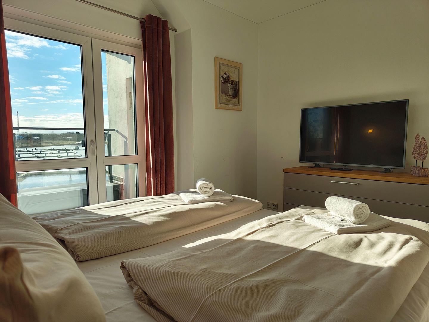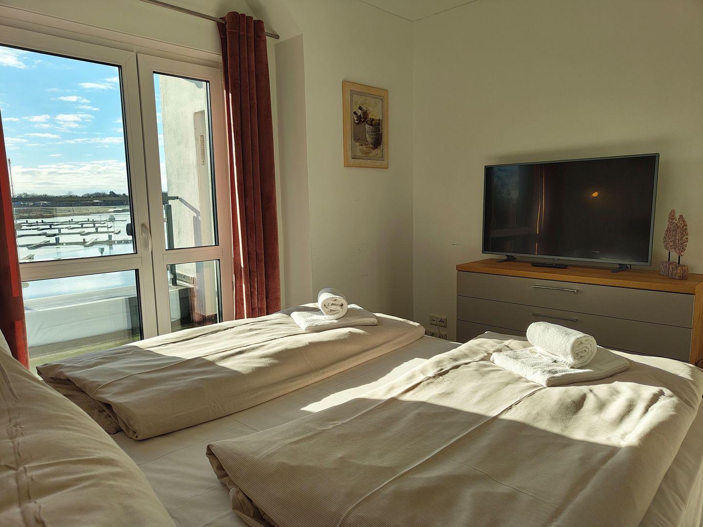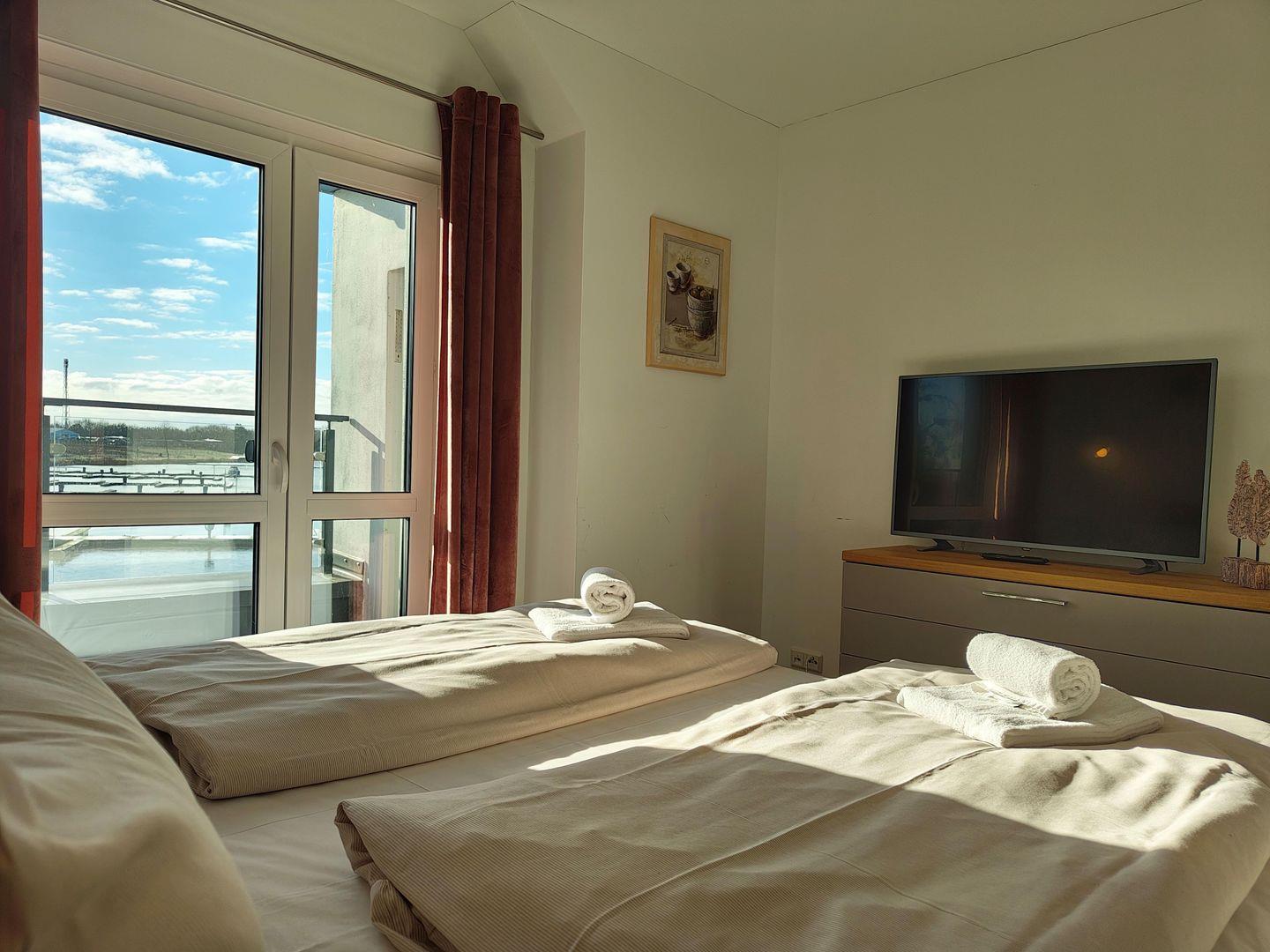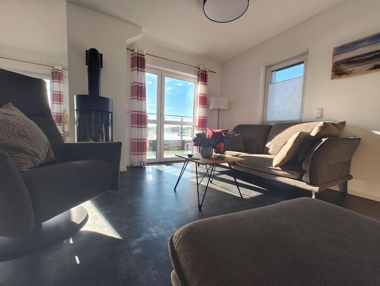 Das Apartment mit Blick auf den Hafen bietet Platz für bis zu 4 Personen auf 1 Etage im oberen Geschoss unserer Skipper-Ferienhäuser mit 2 Schlafzimmern. Es verfügt über einen offenem Wohn-/Essbereich, Küchenzeile, Dampf-Sauna , Balkon, 2 PKW-Stellplätzen. Für den perfekten Start in den Urlaub sind die Betten bei Anreise frisch bezogen und eine Erstausstattung Handtücher liegt bereit. Die Energiekosten sind im Mietpreis inklusive.