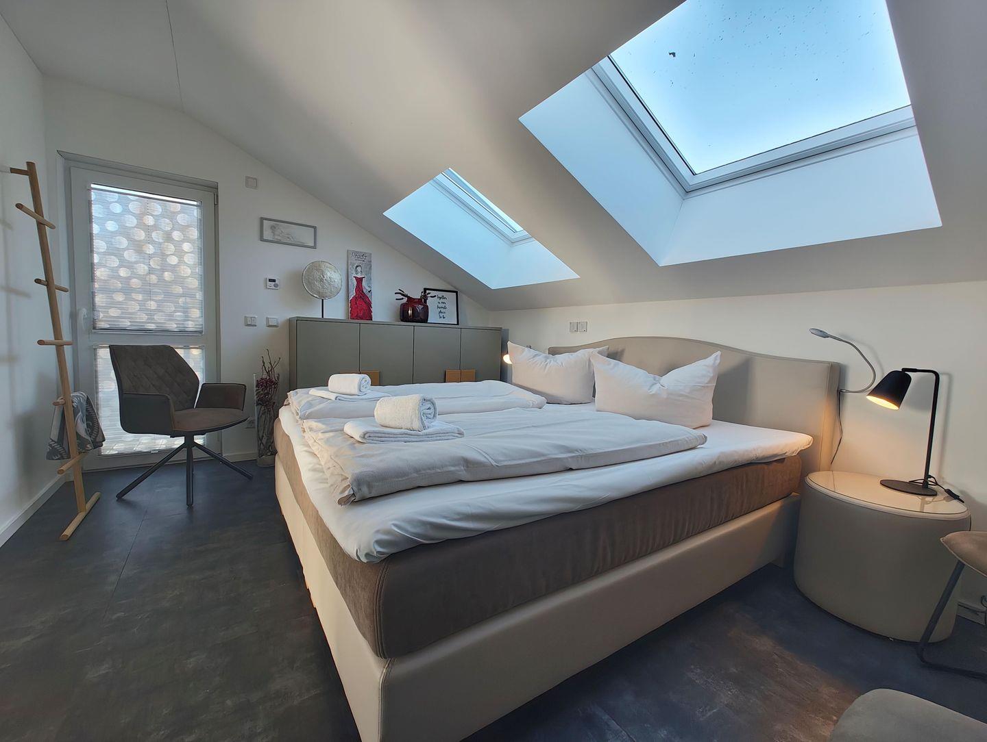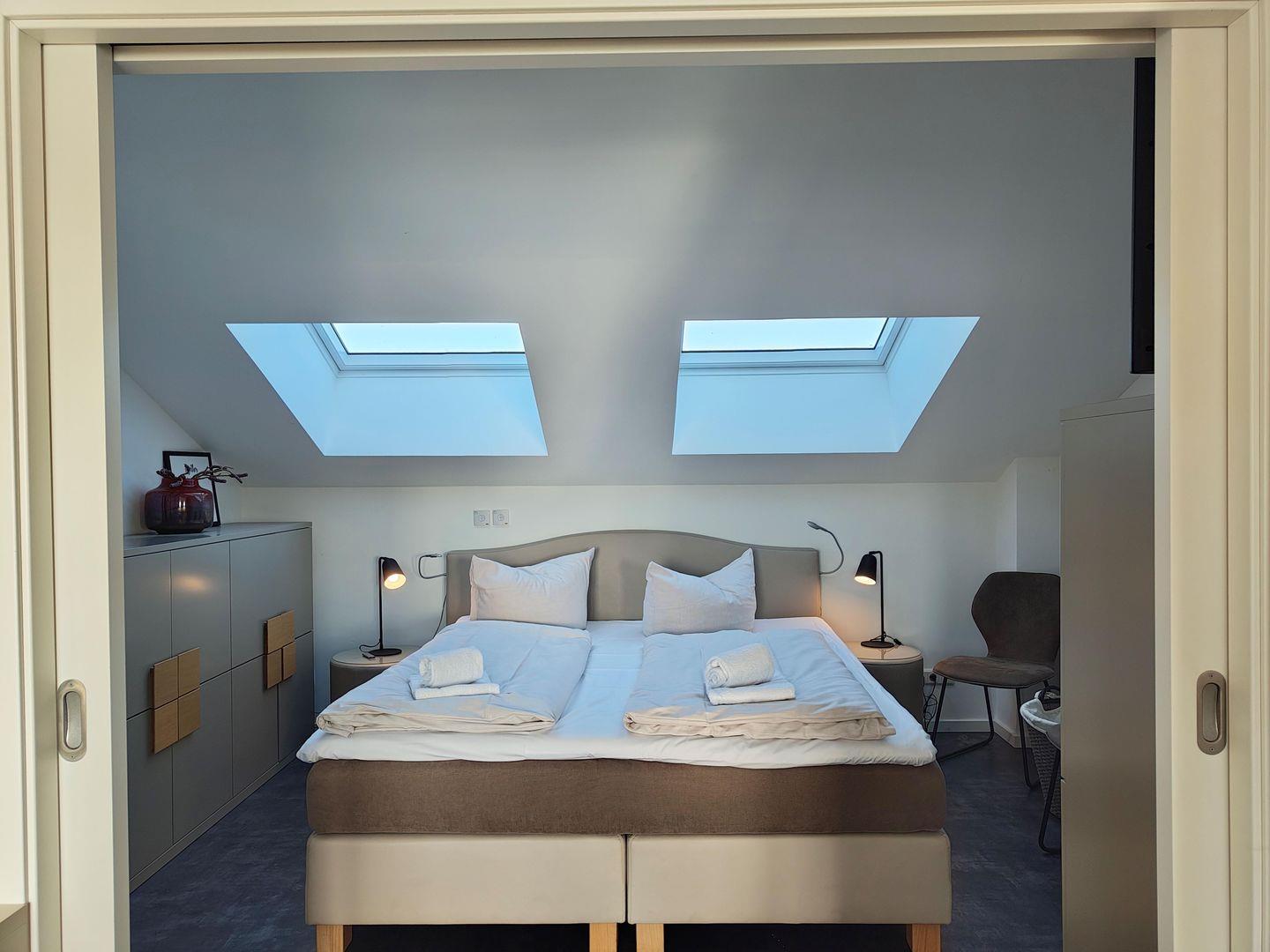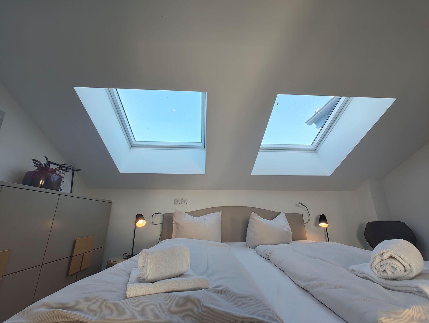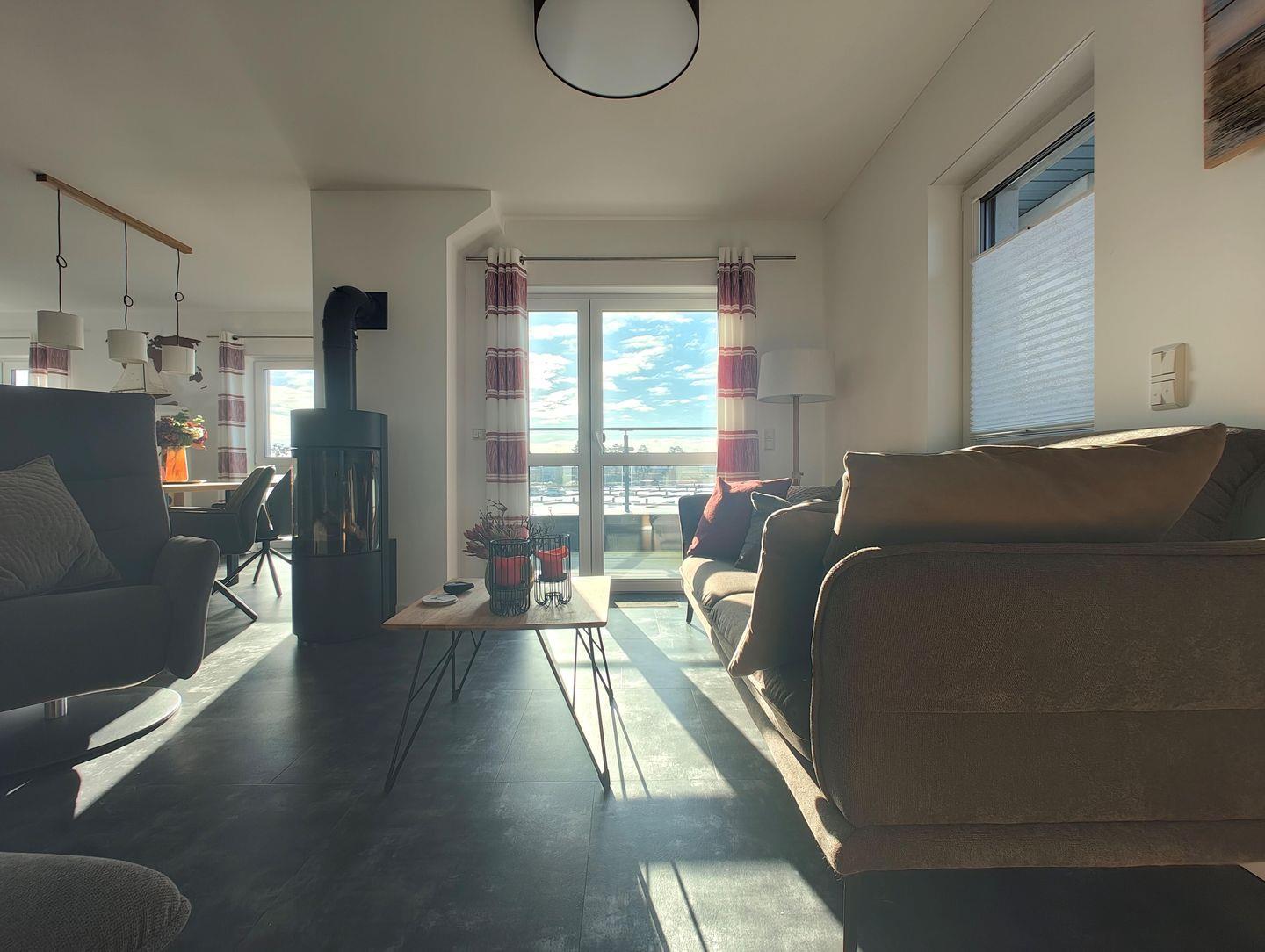 Das Apartment mit Blick auf den Hafen bietet Platz für bis zu 4 Personen auf 1 Etage im oberen Geschoss unserer Skipper-Ferienhäuser mit 2 Schlafzimmern. Es verfügt über einen offenem Wohn-/Essbereich, Küchenzeile, Dampf-Sauna , Balkon, 2 PKW-Stellplätzen. Für den perfekten Start in den Urlaub sind die Betten bei Anreise frisch bezogen und eine Erstausstattung Handtücher liegt bereit. Die Energiekosten sind im Mietpreis inklusive.