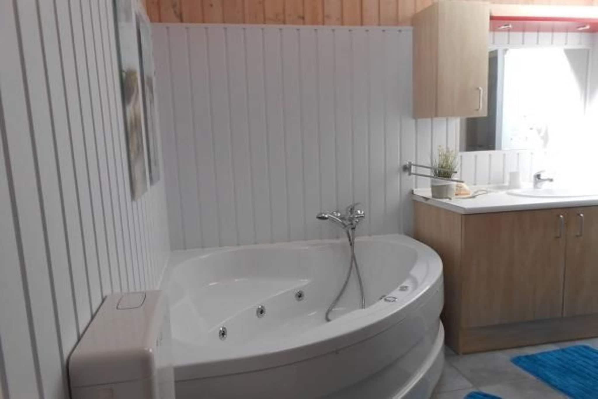 Stueetage: (Køkken(kogeplade(Komfur med fire kogeplader, glaskeramisk), elkedel, brødrister, kaffemaskine, ovn, mikrobølgeovn, opvaskemaskine , køle-fryseskab), Stue/soveværelse(enkeltsovesofa, Fjernsyn(parabol), spisebord, sofahjørne), soveværelse(dobbeltseng, Fjernsyn), badeværelse(Bubble bath, bruser, sauna, håndvask, toilet)) tørretumbler(deles med andre gæster, betalt), vaskemaskine(deles med andre gæster, betalt), varme(gas, gulvvarme), terrasse, havemøbler, parkering, barnestol, baby crib(paid)