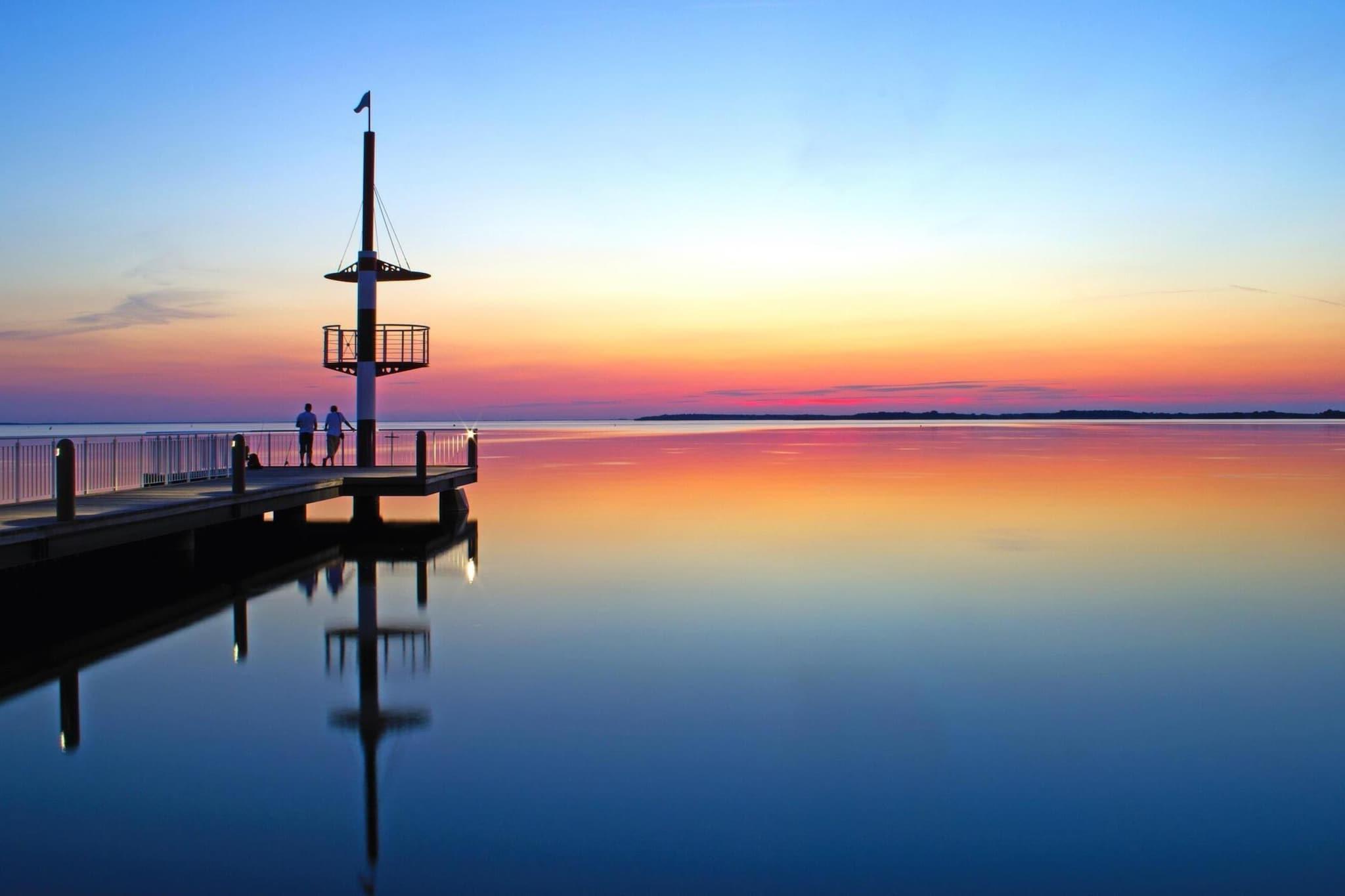 Dette indbydende feriehus har plads til op til ni gæster og har fire veludstyrede soveværelser og to moderne badeværelser. Ejendommen er designet til familietræf eller gruppeudflugter og tilbyder vigtige faciliteter såsom trådløst internet, så alle kan holde kontakten. Selvom der ikke er en privat pool, kan gæsterne benytte de nærliggende fritidsfaciliteter og den naturlige skønhed i området. I nærheden kan gæsterne nyde en række attraktioner, herunder en swimmingpool og en sauna i ferieparken Mirow, 12 km derfra. Der tilbydes introduktionskurser i surfing og sejlads kun 5 km fra parken. Udflugter til slottsøen i Mirow, slottet i Wesenberg og byen Neustrelitz byder på kulturel afveksling. For dem, der søger mere eventyr, er Berlin, Potsdam og Rostock let tilgængelige for dagsture og beriger ferieoplevelsen. Parken tilbyder omfattende maritime aktiviteter og har adgang til Müritz fra marinaen uden sluser og broer. Gæsterne kan leje åbne sportsbåde uden kørekort eller større husbåde og også lægge deres egne både til. Faciliteterne omfatter en 90-tons kran, en 3,2-tons søjlekran, en trailerparkering og en marina-butik. Lystfiskere vil sætte pris på det rige fiskebestand i Müritz, der giver dem mulighed for at fange forskellige arter som brasen, ål, aborre, sandart og gedde. Denne feriepark er et fremragende rejsemål for afslapning og eventyr i et betagende naturlandskab.
