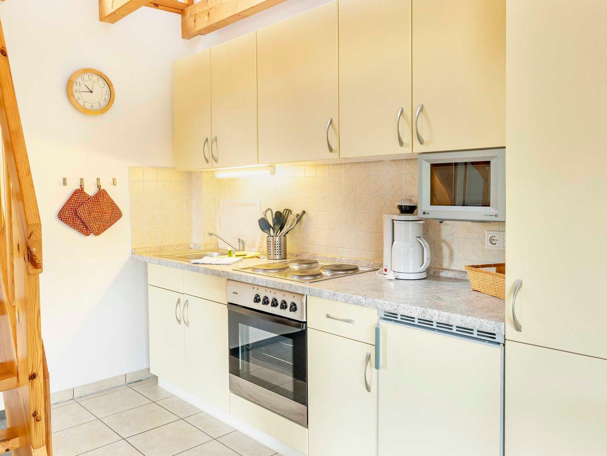 Alle Ferienwohnungen dieses Typs sind mit Wohnküchen, Essbereich sowie mit ausreichendem Geschirr bestückt. Zum Inventar der Unterkunft gehören zudem ein Wasserkocher, Toaster, Kaffeemaschine, Mikrowelle und Kühlschrank, sowie ein Herd mit vier Herdplatten und Backofen.Teilweise gibt es auch Geschirrspüler in den Ferienwohnungen. Alle Ferienwohnungen sind mit Farb-TV, Radio und gemütlichen Sofaecken ausgestattet.