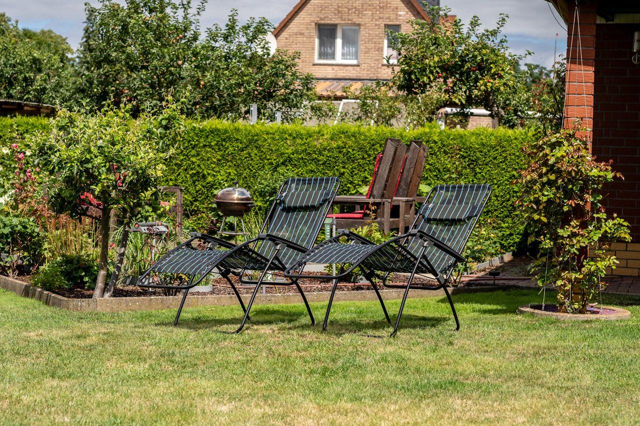 Gemütliche barrierefreie Ferienwohnung im EG mit überdachter Terrasse, gepflegter Garten, WLAN, Fahrradabstell - und Lademöglichkeit für E-Bike, Strand und Hafen in 500 m erreichbar, Einkaufsmöglichkeiten fussläufig