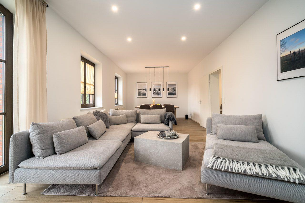 Die großzügige Fläche von 130 m² verteilt sich auf insgesamt vier Zimmer, darunter drei gemütliche Schlafzimmer, in denen eine erholsame Nachtruhe garantiert ist. Die beiden modern ausgestatteten Badezimmer, eines mit einer bodengleichen Dusche und eines mit einer Badewanne, bieten Ihnen maximalen Komfort. Die Innenräume sind geschmackvoll und funktional gestaltet, mit Vinylböden in den Schlafzimmern und dem Wohnzimmer, sowie einer einladenden Sofaecke, die zum Entspannen einlädt.