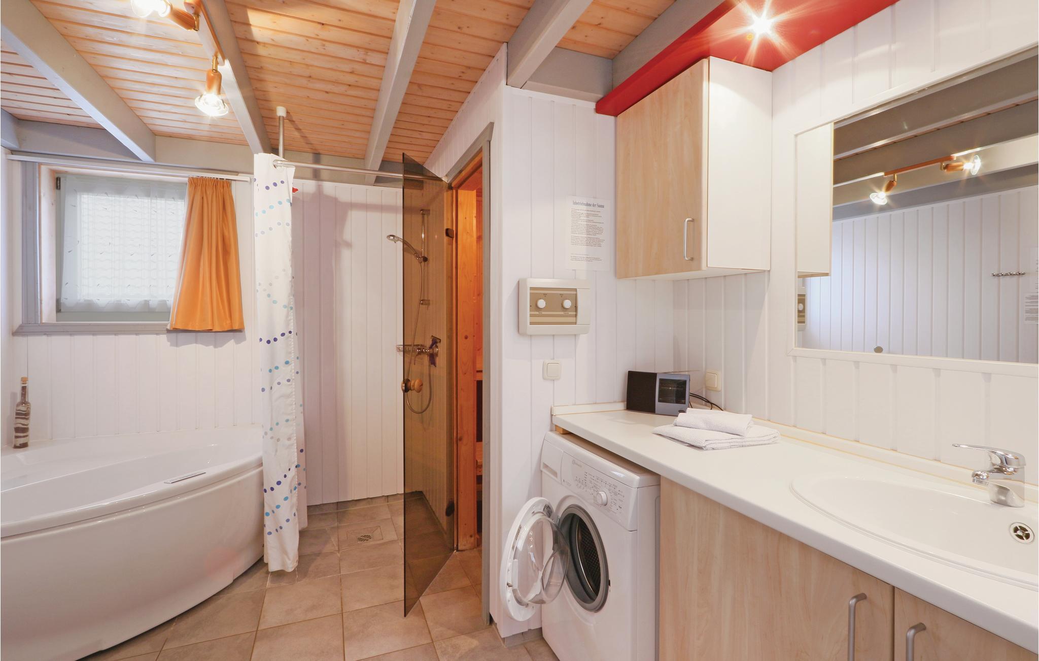 Her kan I holde jeres afslappede ferie i det hyggelige feriehus ’Wildganz’ til op til seks personer. Huset fordeler sig på stueplan og første sal. I har jeres helt eget private lille wellnessområde med sauna og whirlpool i stueplan. I badeværelset er der både bidet og hårtørrer. I stuen står en velkendt dansk brændeovn som hurtigt spreder varme og hygge. Huset er oplagt til familieferie året rundt.