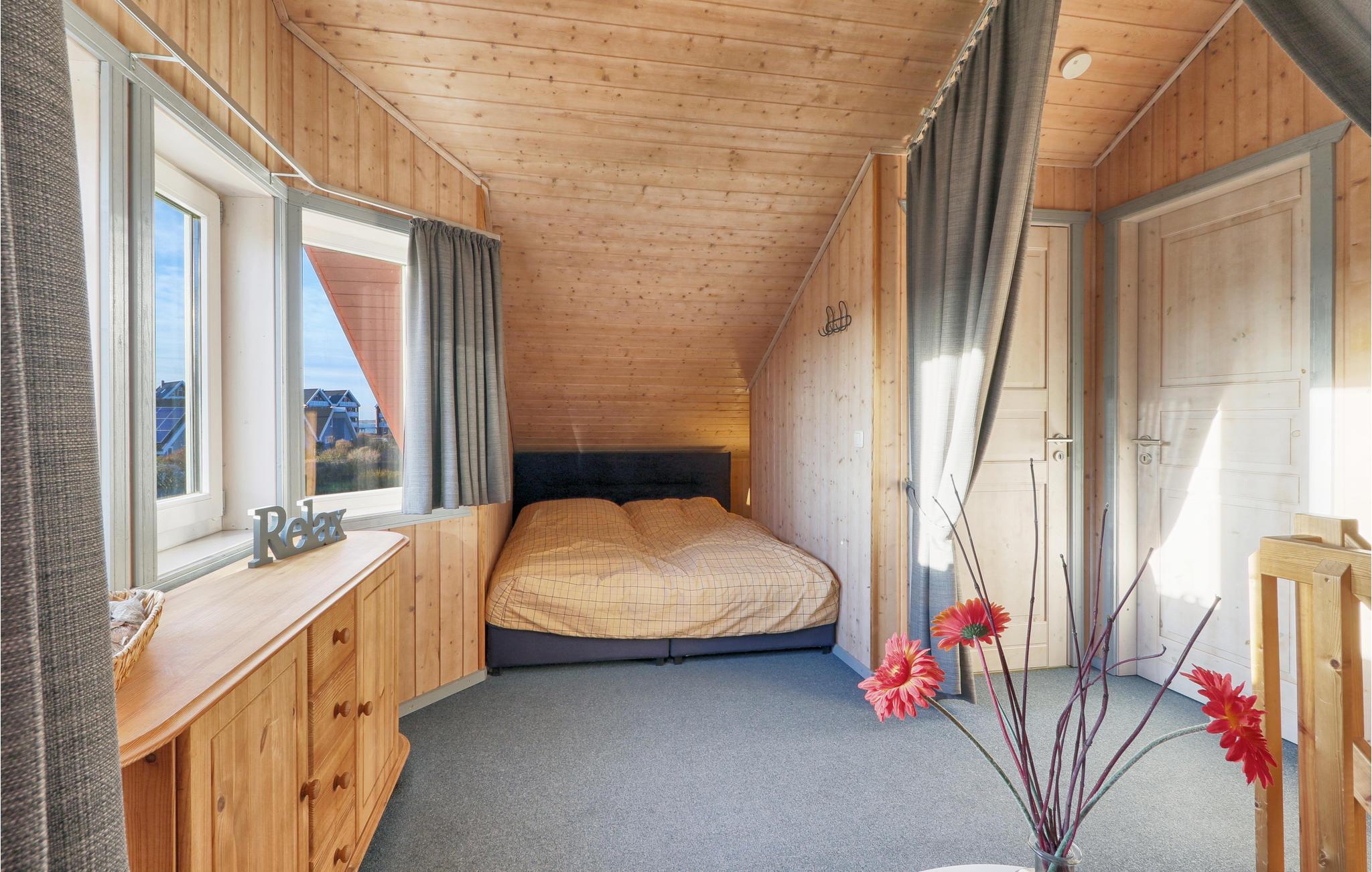 I soveværelset i stueplan er der en dobbeltseng. På første sal ligger soveværelset med to enkeltsenge. På den åbne hems ligger de to sidste sovepladser.