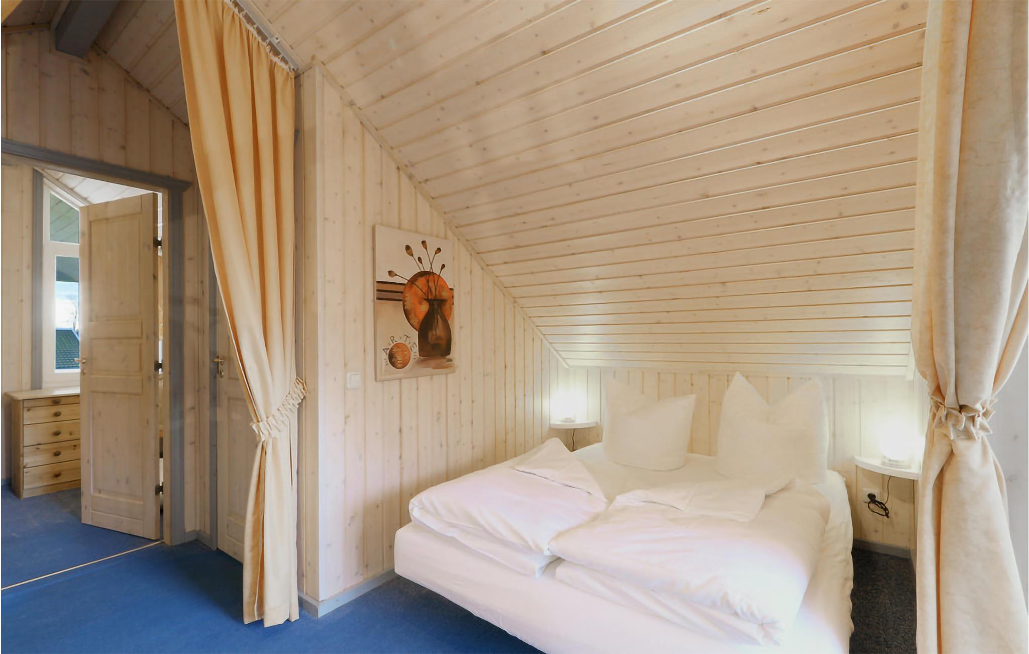Det moderne feriehus ’Seeschwalbe Classic’ har plads til seks personer. I den lyse opholdsstue er der dejlig brændeovn, som kan varme hele rummet op på kolde dag. Kommer I hjem efter en lang spadseretur, kan I endda se frem til at sætte jer i saunaen eller spabadet og få varmen. Der er myggenet for vinduerne.
