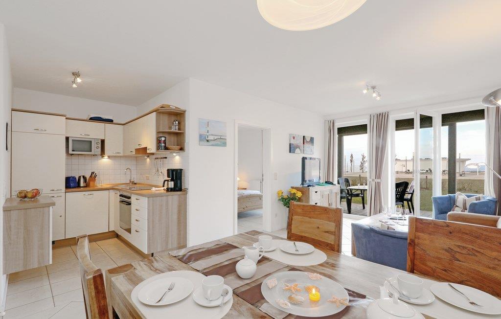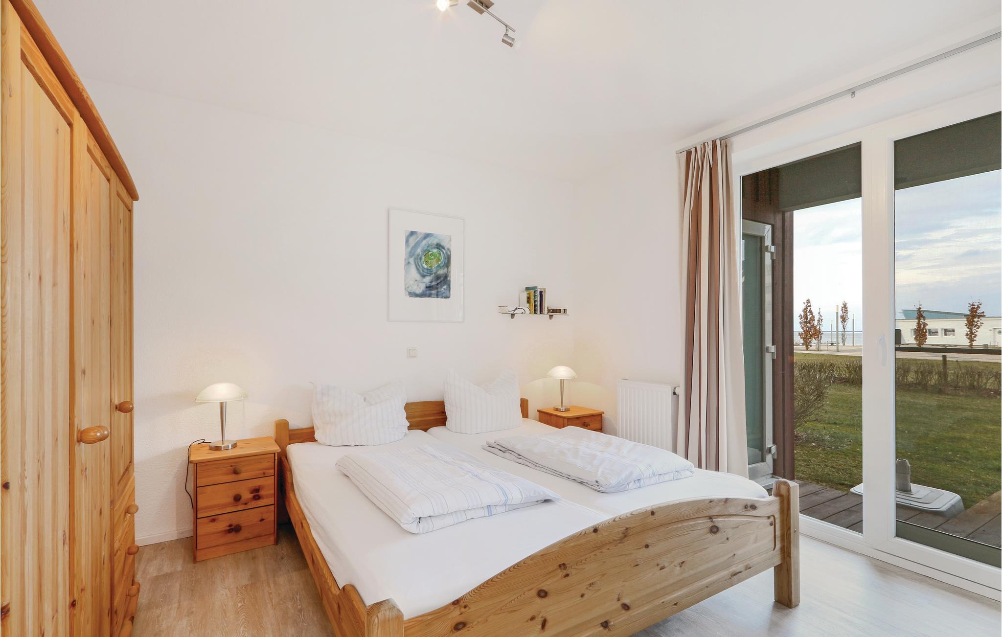 Denne ferielejlighed hedder Gartendeck og ligger i ferieparkens kaptajnshus i stueetagen. Her er der god plads til fire personer, og fra terrassen er der udsigt til søen og haven hvor ungerne kan lege uforstyrret mens I slapper af. Der er adgang til terrassen fra det ene soveværelse. I har også jeres egen sauna i huset og det store køkkenalrum er lyst og veludstyret. Der er føntørrer og bidet i badeværelset.