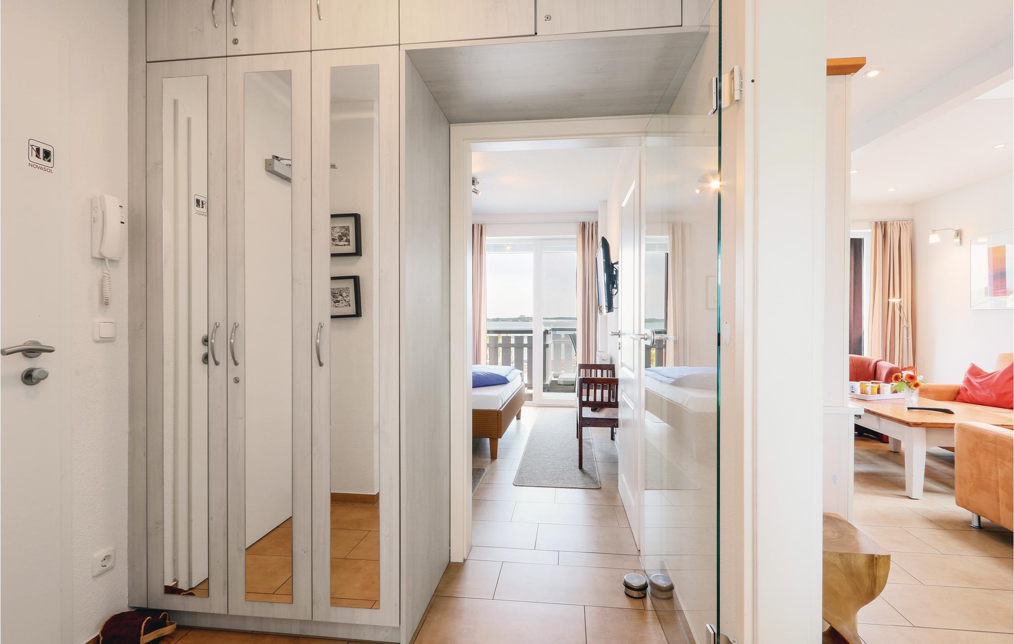 Den toplans lejlighed Kapitänsdeck har en skøn panoramaudsigt over Müritz fra de to altaner. Da der er to altaner er der sol fra morgen til aften. Skulle det ikke være vejr til udendørs ophold, så kan I nyde livet i den lyse stue og tænde op i kaminen. I det store badeværelse er der brusebad og whirlpool, til et afslappet ophold. Der er føntørrer i badeværelset.