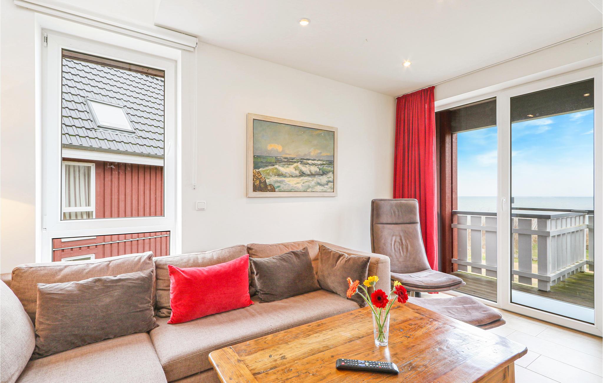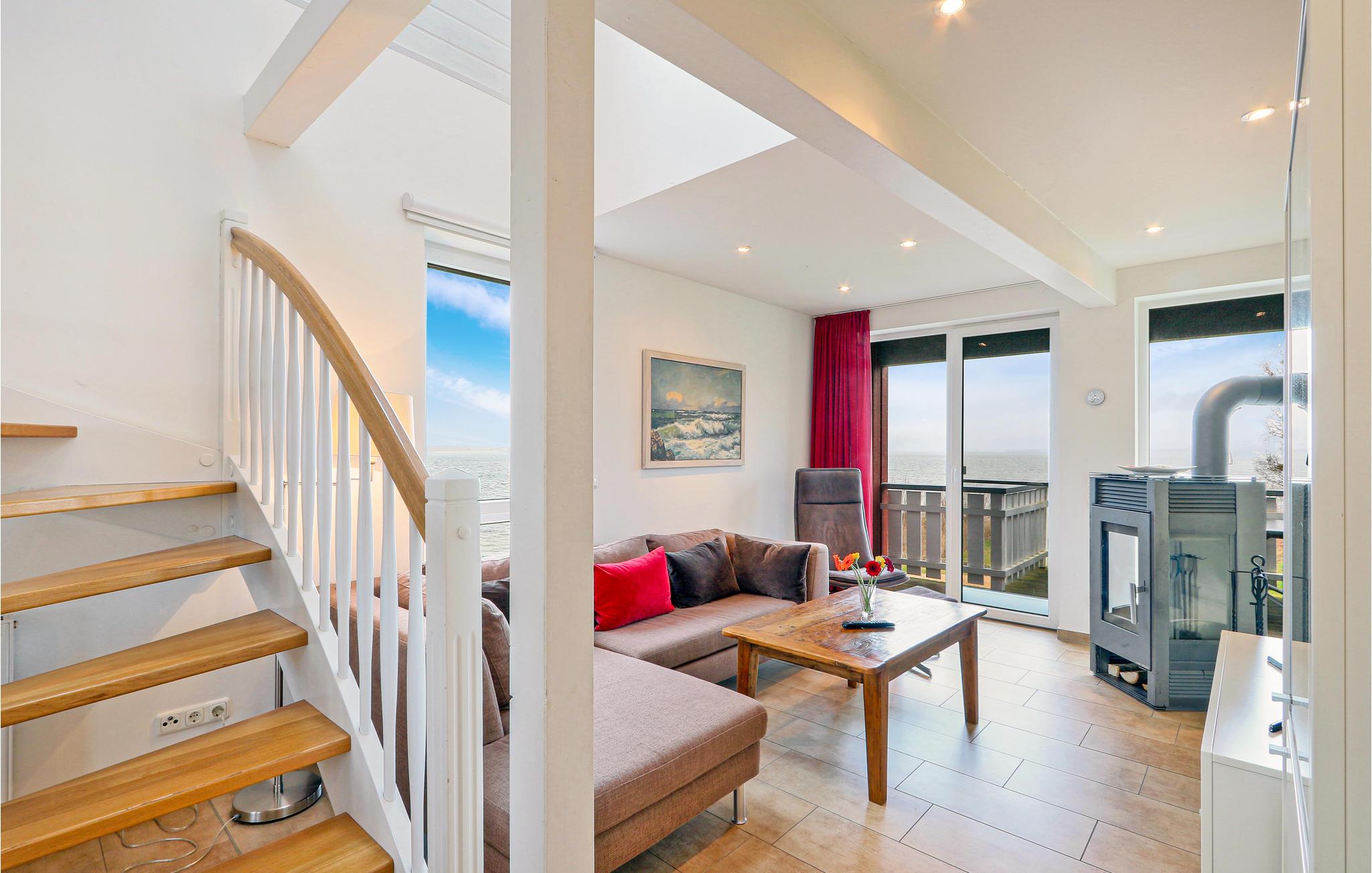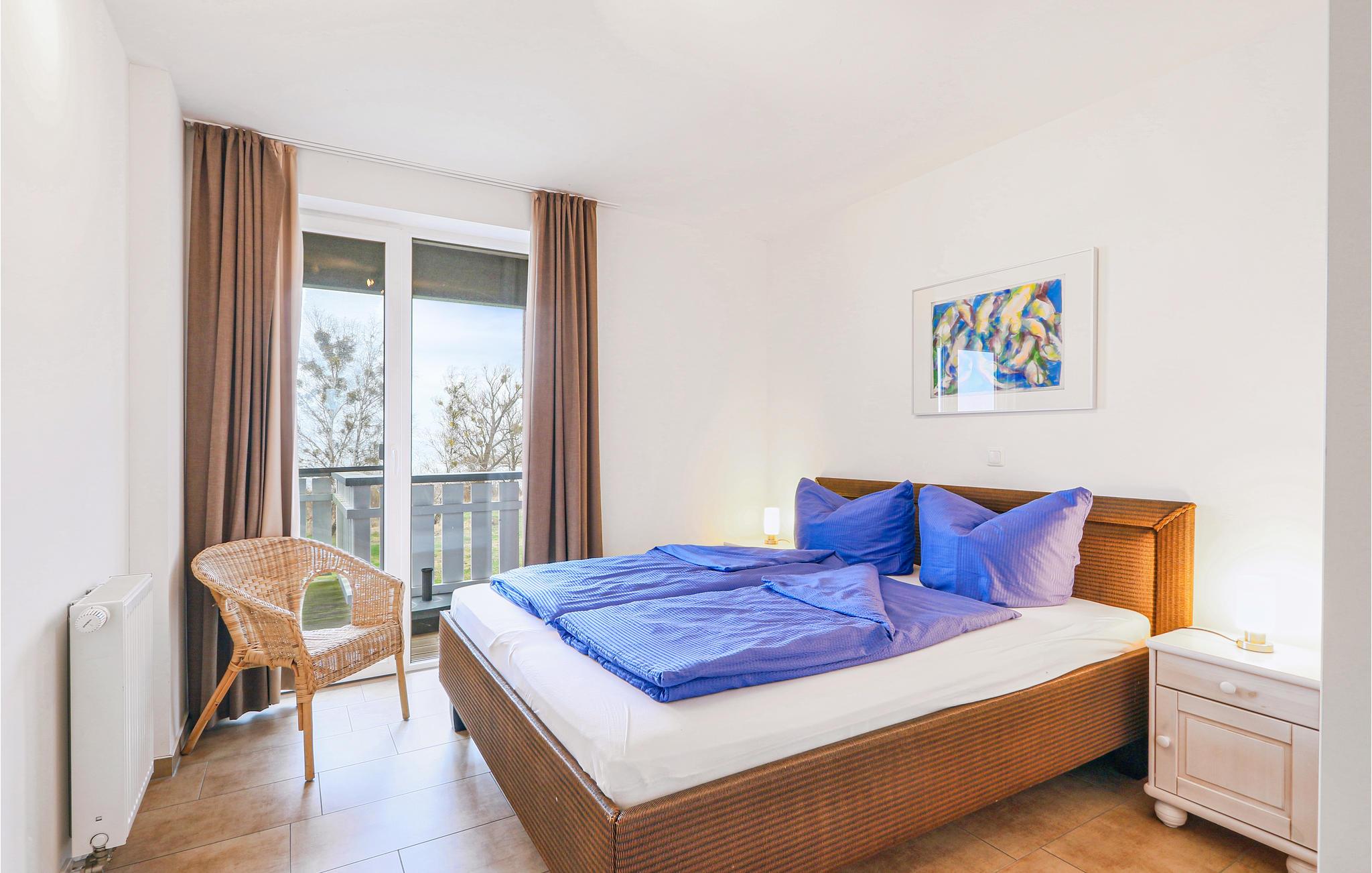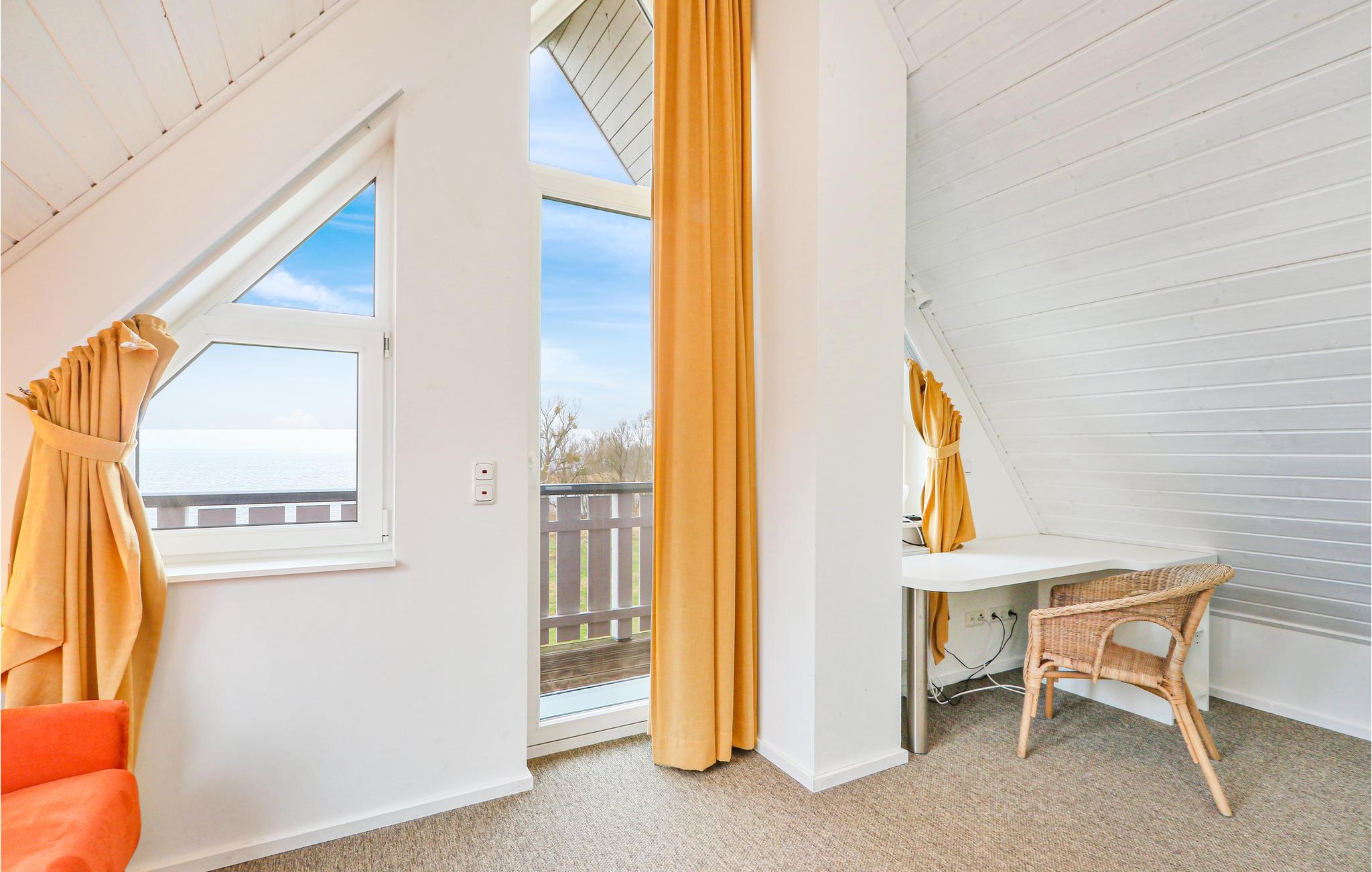 Denne maisonette lejlighed "Kapitänsdesk" har en vidunderlig panoramaudsigt til Müritz fra begge altaner. Da her findes yderligere to altaner, kan I nyde solen helt fra morgen til aften. Hvis vejret ikke skulle arte sig en dag, kan I hygge jer i den meget lyse opholdsstue foran brændeovnen. I det store badeværelse findes et spabad til en person, hvor I kan nyde varmen, boblerne og rigtig slappe af.