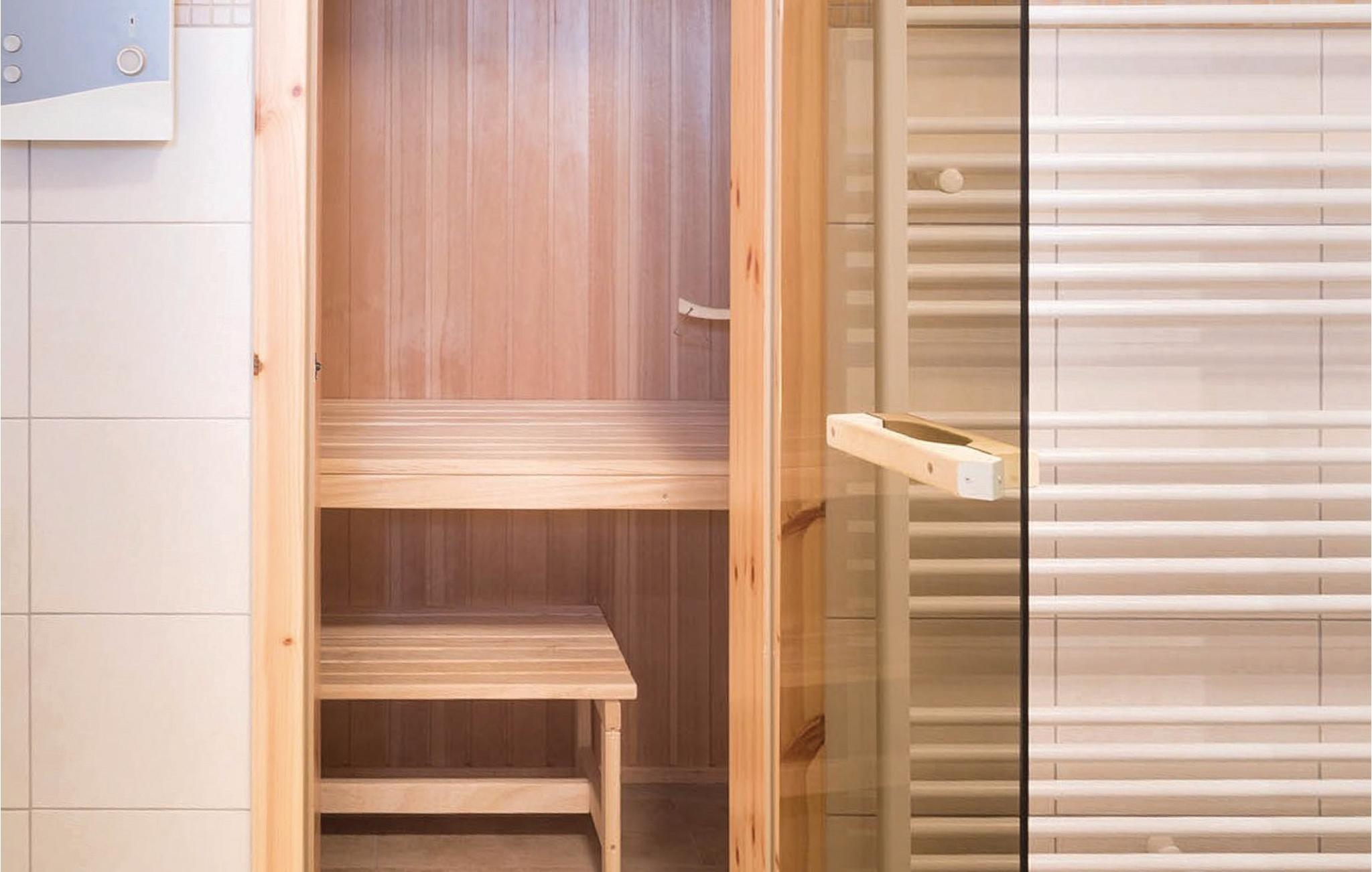 Når I har været ude og gå ture ved vandet bliver det et af feriens højdepunkter når I kommer hjem og kan tage en tur i saunaen. Det ene soveværelse med dobbeltseng, har direkte adgang til terrassen. Det andet soveværelse har to enkeltsenge. Opholdsstuen er rummelig og lys.
