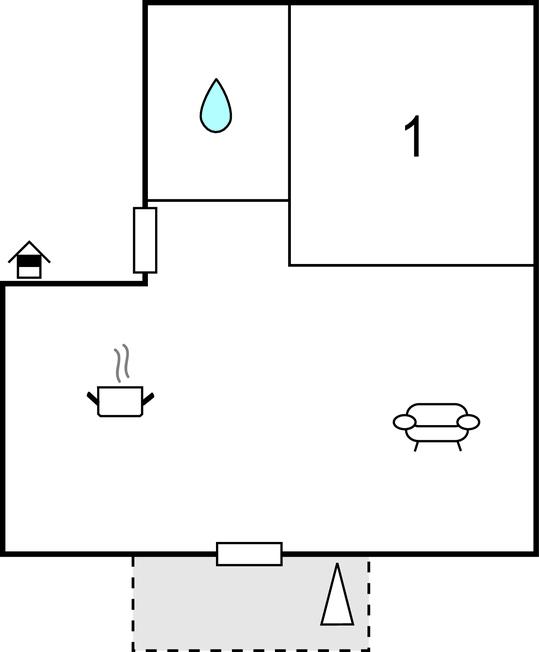 Opholdsstue/køkken 34m2 - 1 Soveplads. (Sofa, madras eller lignende).