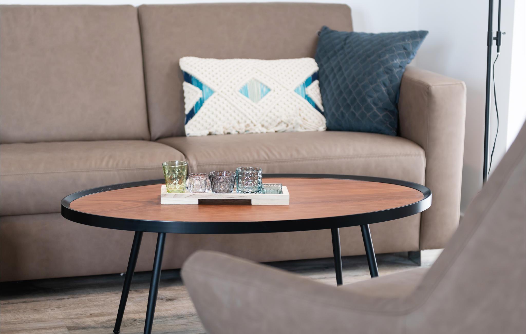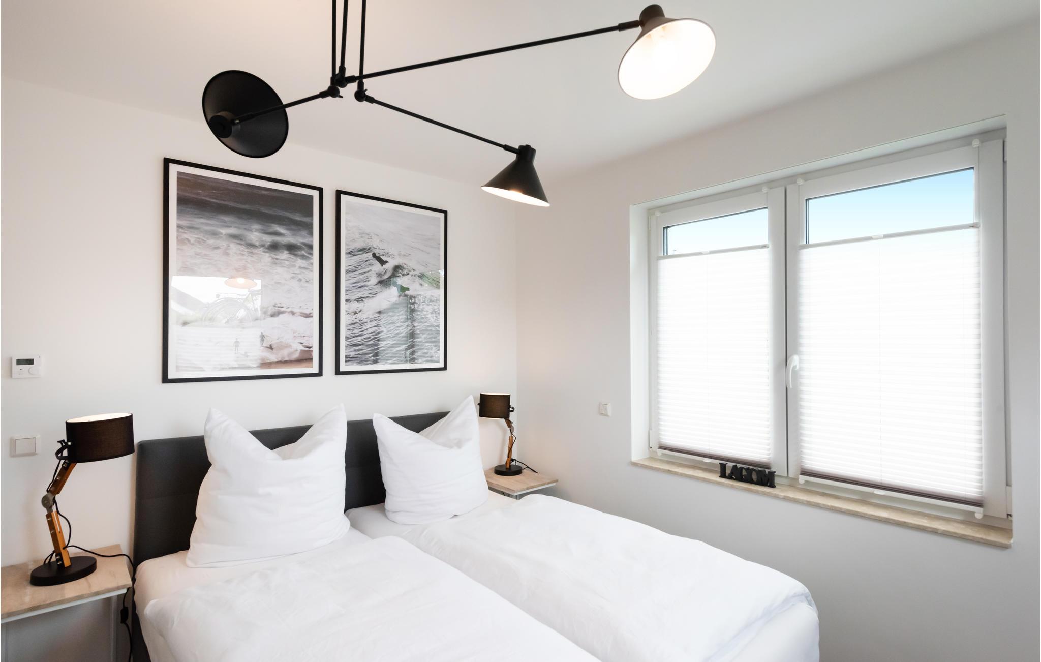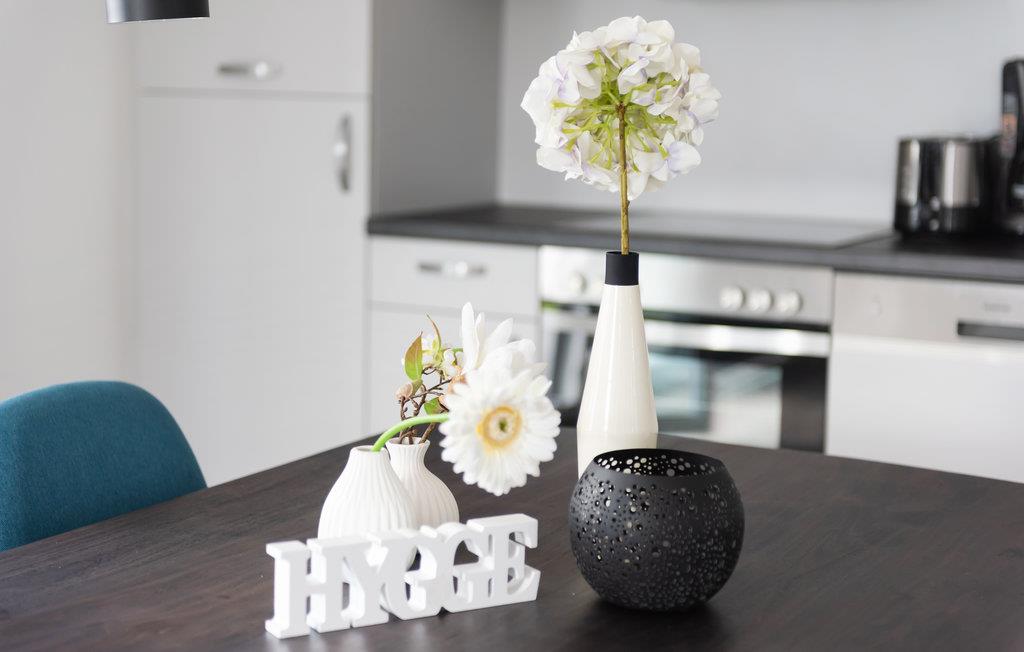 Lejligheden er moderne og komfortabelt indrettet og tilbyder direkte adgang fra stuen og det åbne køkken til den overdækkede terrasse med udsigt over bådehavnen og Müritz-kanalen. Her kan I begynde dagen med en afslappet morgenmad eller afslutte den med et glas vin.