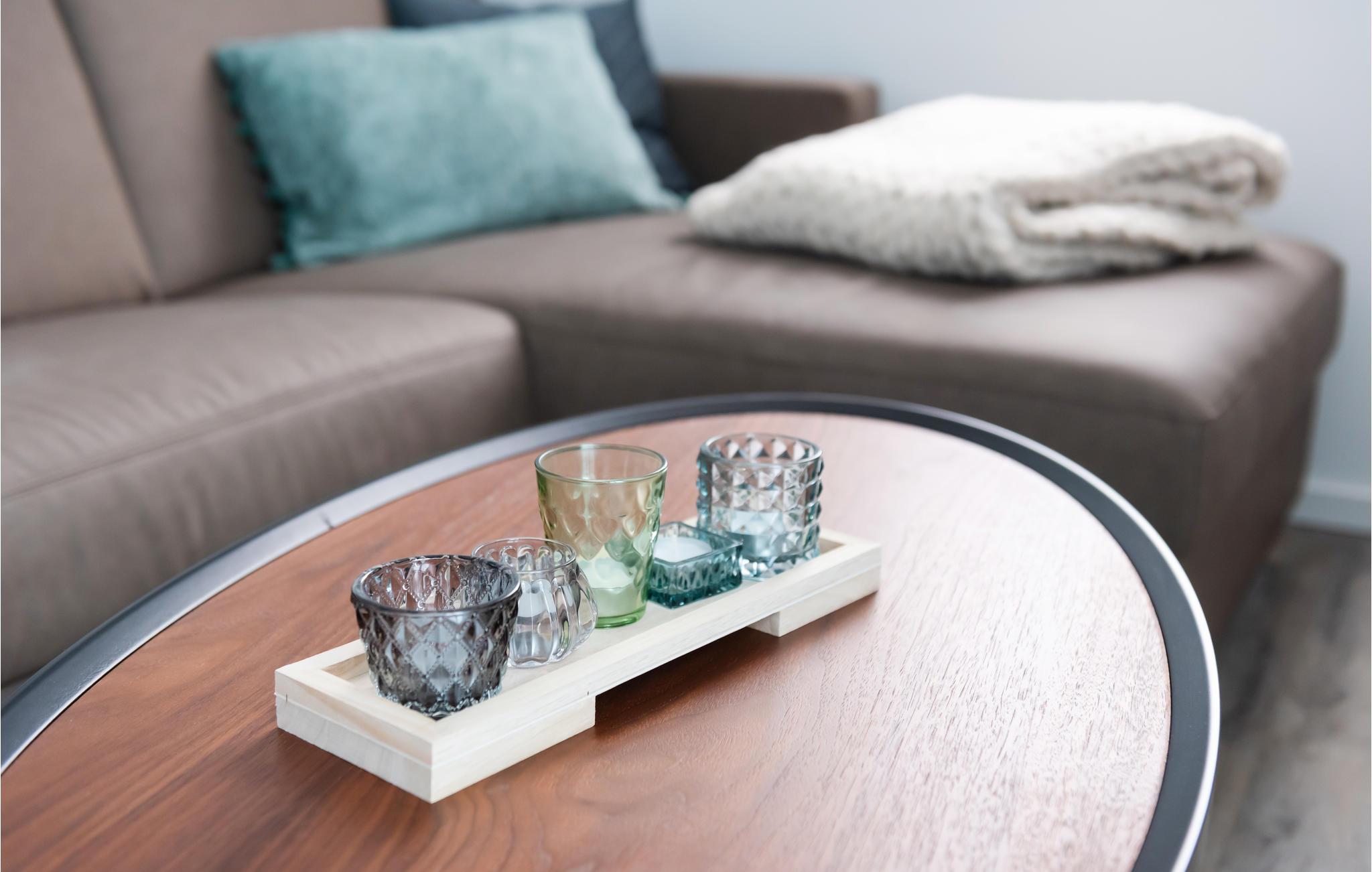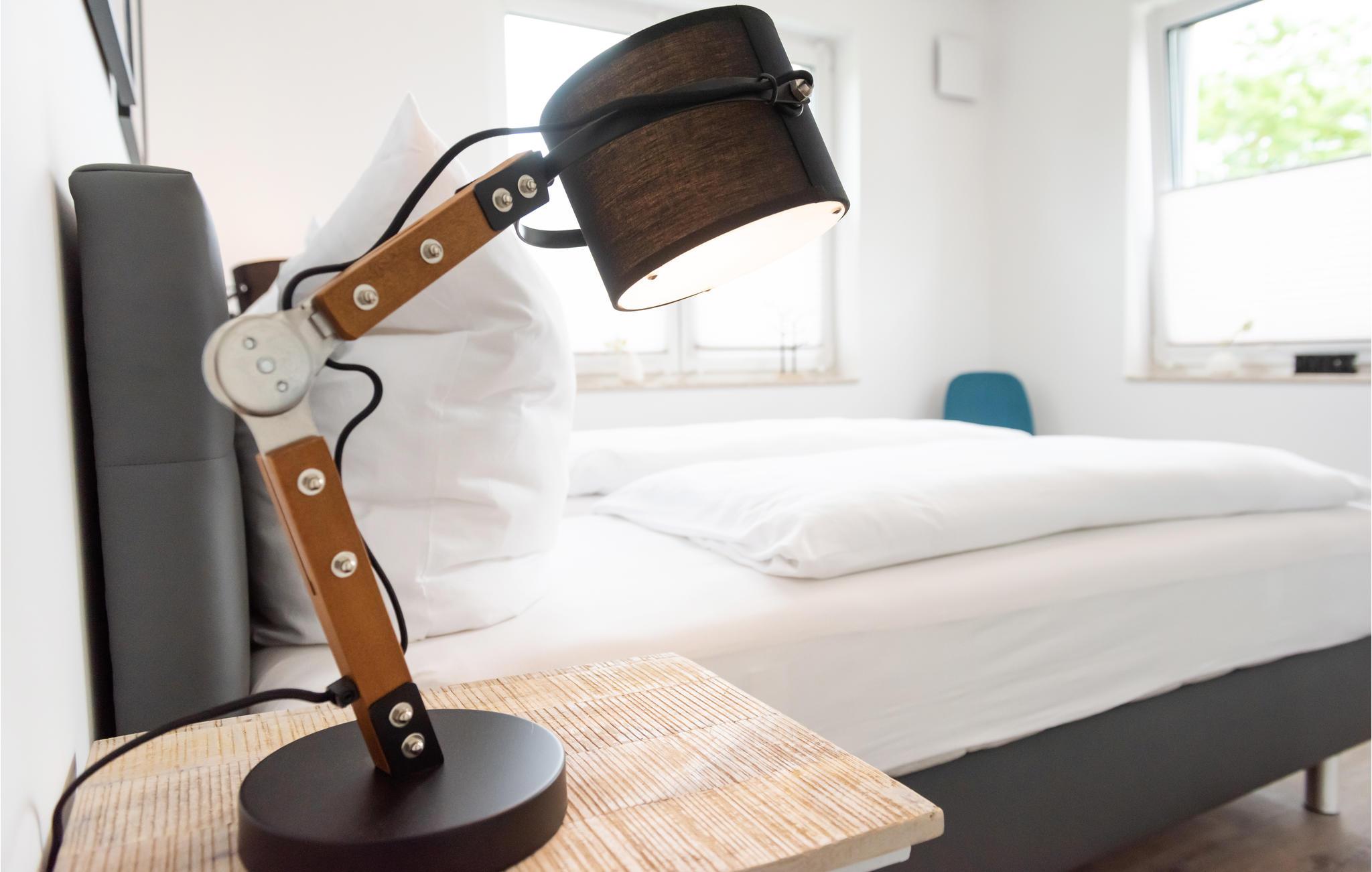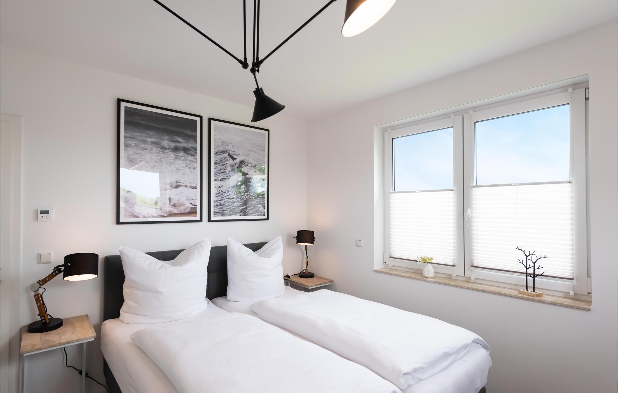Lejligheden er moderne og komfortabelt indrettet og tilbyder direkte adgang fra stuen og det åbne køkken til den overdækkede terrasse med udsigt over marinaen og Müritz-kanalen. Her kan du starte dagen med en afslappet morgenmad eller afslutte den med et glas vin.