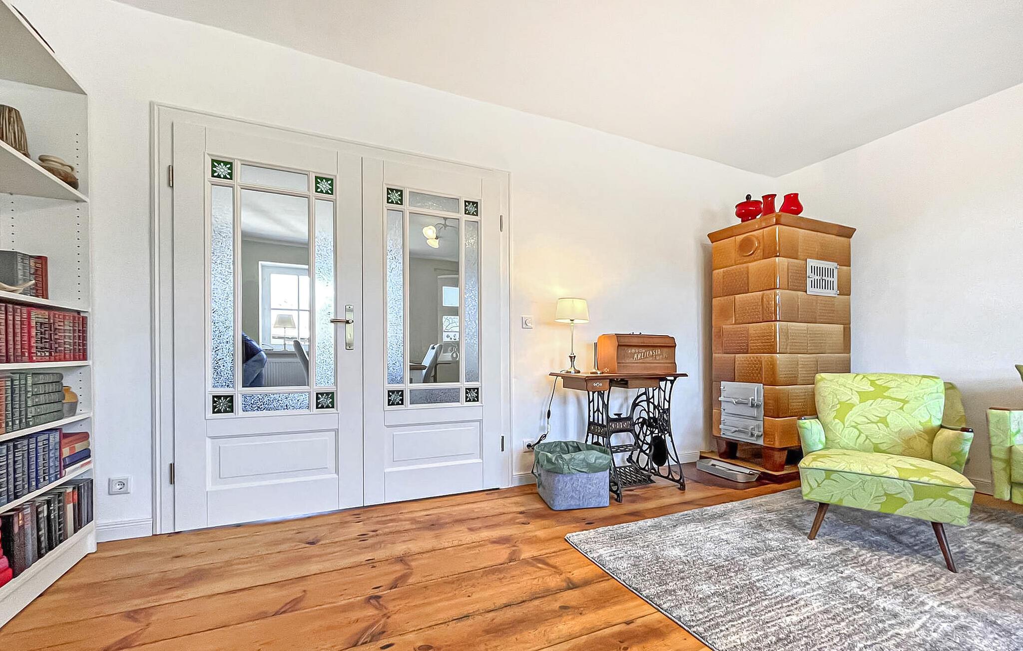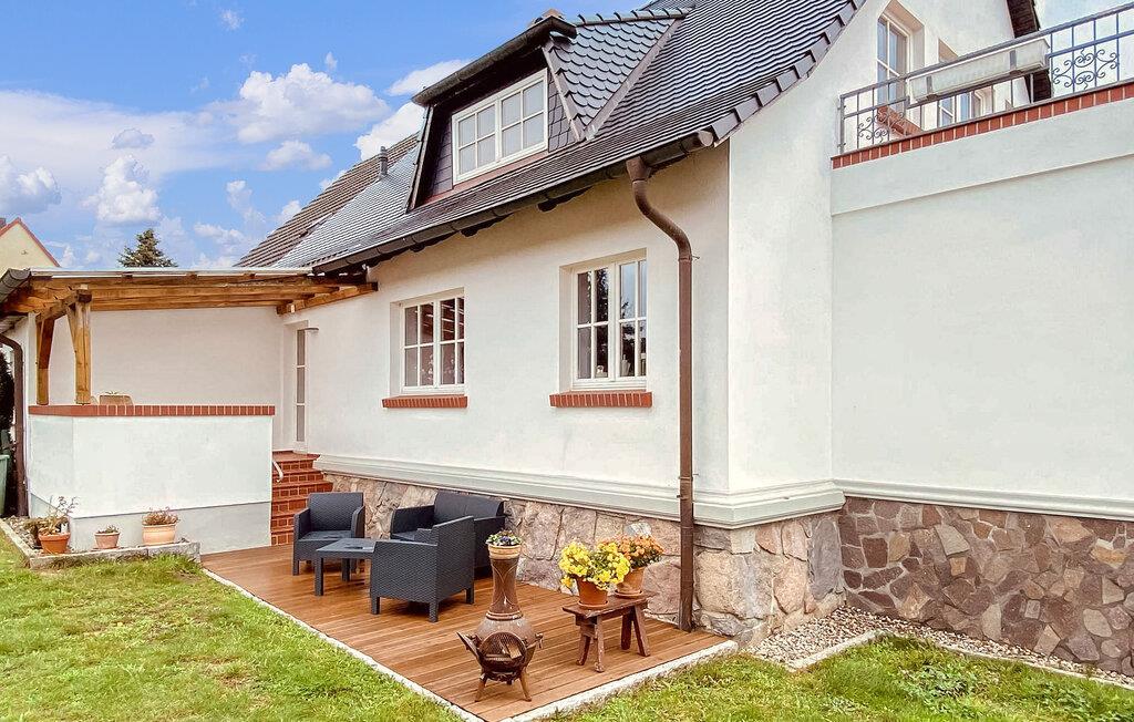 Det cirka 75 kvm store dobbelthus til maks. 2 personer ligger på en 2000 kvm grund (til eksklusiv brug). Det tidligere stuehus fra det 19. århundrede blev omfattende renoveret og indrettet til en høj standard i 2021. Der er en stue (polstrede møbler, fladskærms-tv, kakkelovn), et stort stue-køkken (spisebord, tv, el-komfur med ovn, køleskab med fryser, opvaskemaskine, mikroovn, diverse køkkenmaskiner), et soveværelse (dobbeltseng) og et badeværelse med brus/toilet og vaskemaskine. Boligen opvarmes med centralvarme. Der er overdækket og møbleret terrasse, grillfaciliteter, cykelkælder, parkeringsplads og WiFi til rådighed. To cykler kan lejes på stedet (5 EUR/cykel og dag). Den samlede pris inkluderer slutrengøring, sengelinned, håndklæder samt vand- og energiforbrug. Reetzow er en landsby i de naturskønne omgivelser i det såkaldte Thurbruch, et af de største fenområder i Østtyskland. Omgivet af søen Gothensee og søen Kachliner og krydset af talrige floder og dræningsgrøfter, er området ideelt til vandreture, cykling og fiskeri. På grund af sin nærhed til Østersøferiestedet Bansin (ca. 4 km) med en meget god turistinfrastruktur, tilbyder Reetzow sine gæster en god blanding af landlig idyl og livlig turisme.