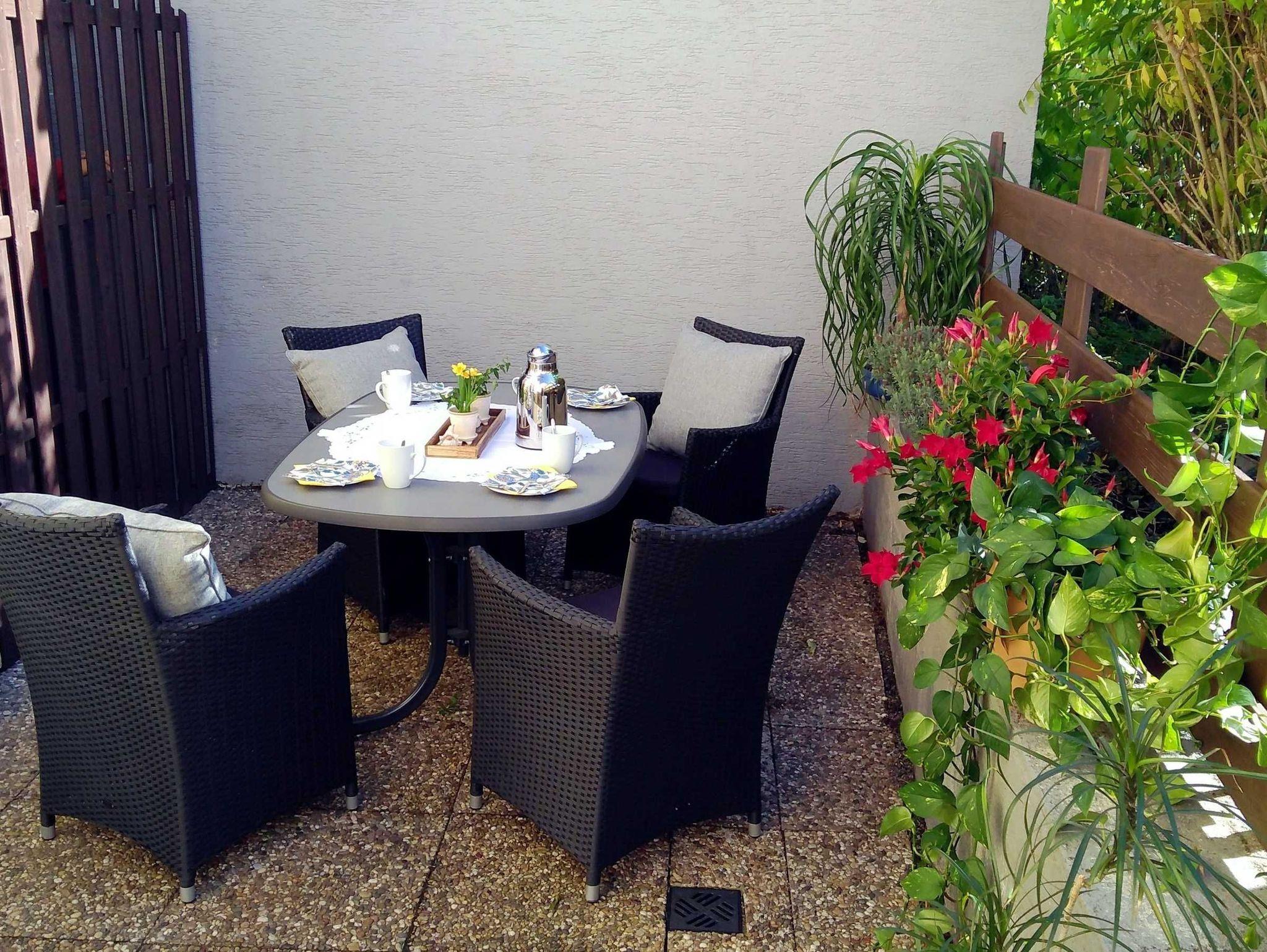 Badezimmer mit Dusche, Badewanne, WC und Waschmaschine. Eigene Terrasse. Hier können sie gerne auf dem eigenen Holzkohlegrill grillen. Flachbild SAT-TV, Radio und eine Spielsammlung ist im Wohnzimmer. Bücher und weitere Spiele können auf Anfrage ausgeliehen werden.