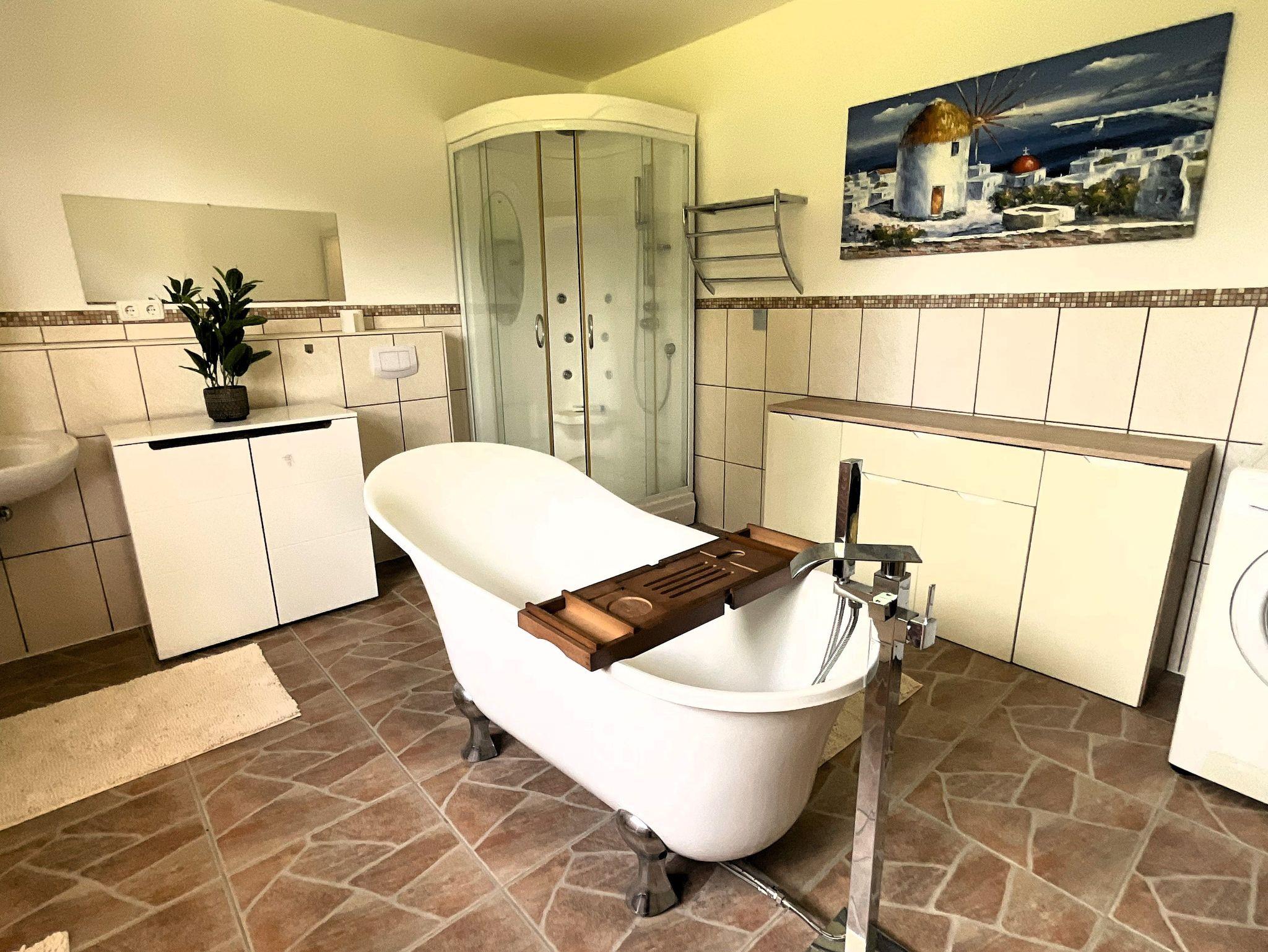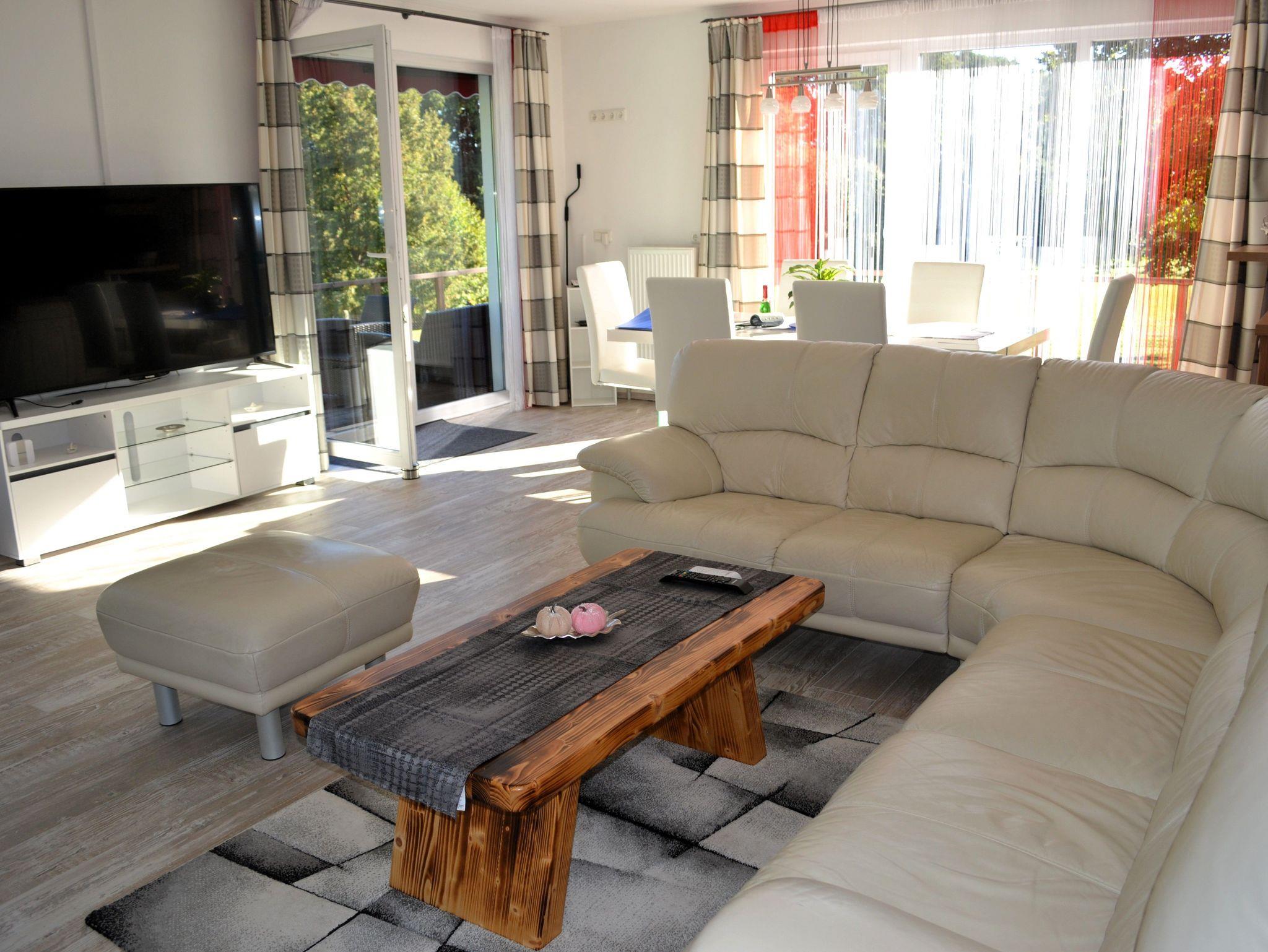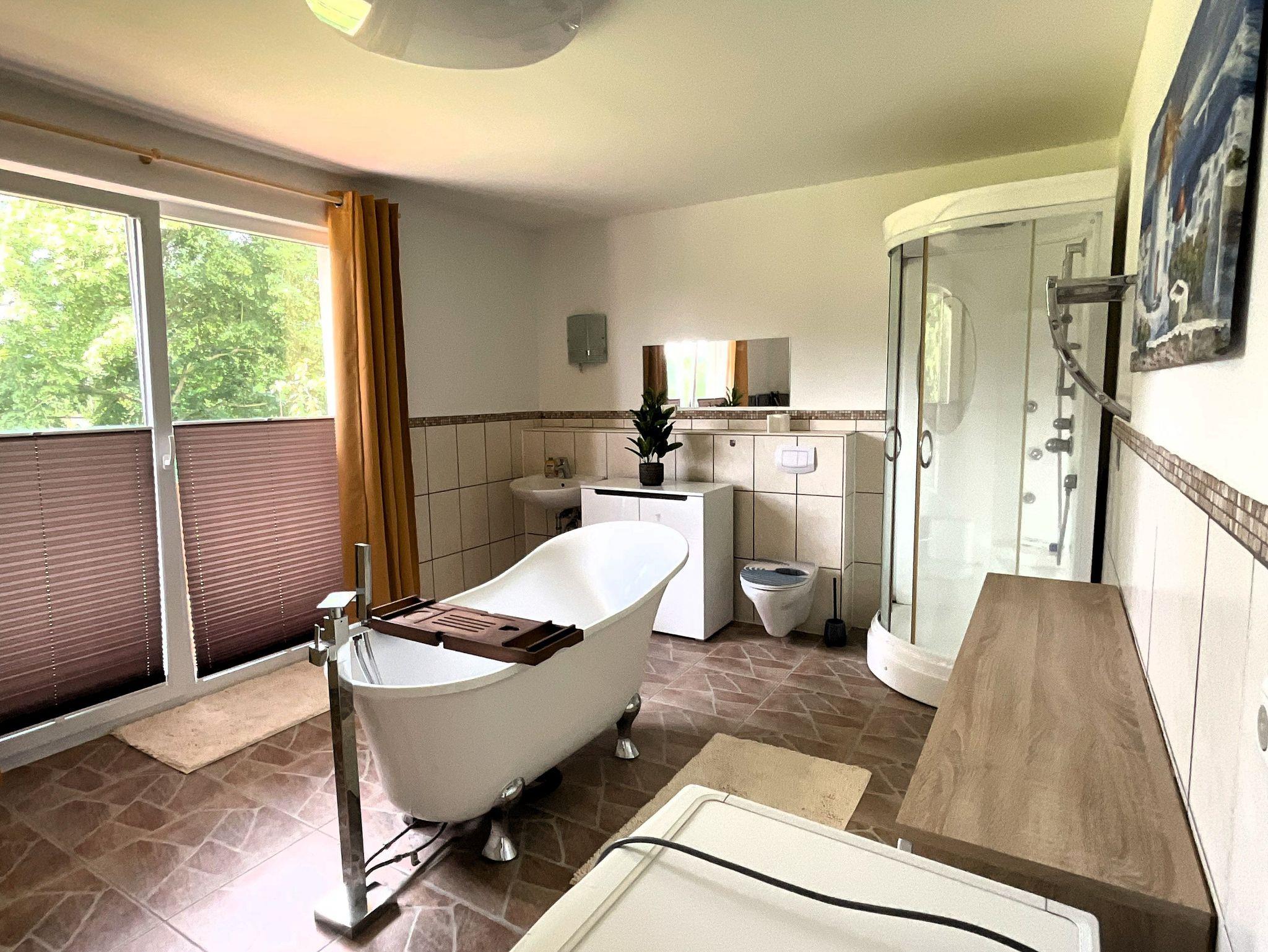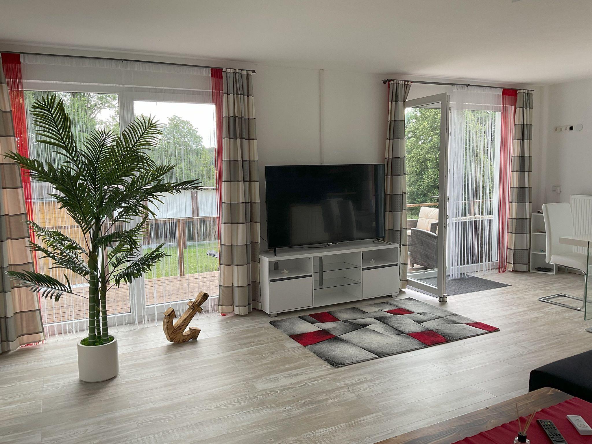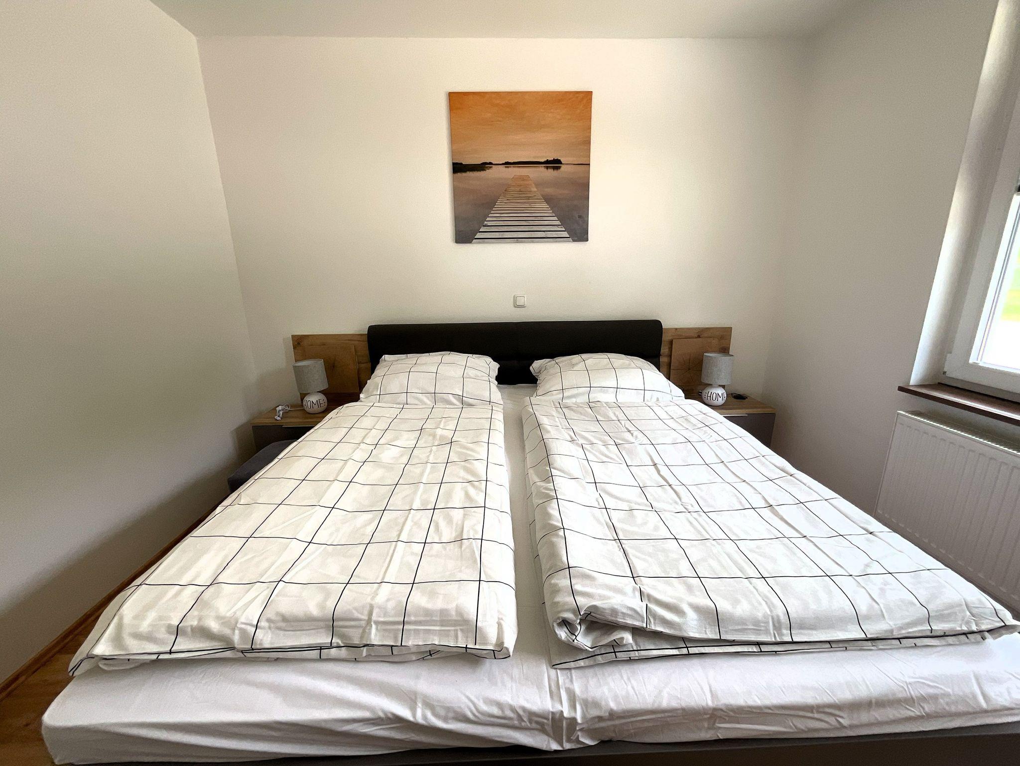 Die Wohnfläche beträgt ca. 80 m². Es steht Ihnen ein Wohnraum mit offener moderner, komplett eingerichteter Küche (E-Herd mit Backofen, Geschirrspüler, Toaster, Wasserkocher, Kaffeemaschine), ein Schlafzimmer mit einem Doppelbett, Flur sowie Bad mit Badewanne und Dusche zur Verfügung. Im Wohnraum gibt es eine gemütliche Sitzgarnitur, einen Esstisch mit 4 Stühlen sowie einen Fernseher. Eine Waschmaschine kann genutzt werden.