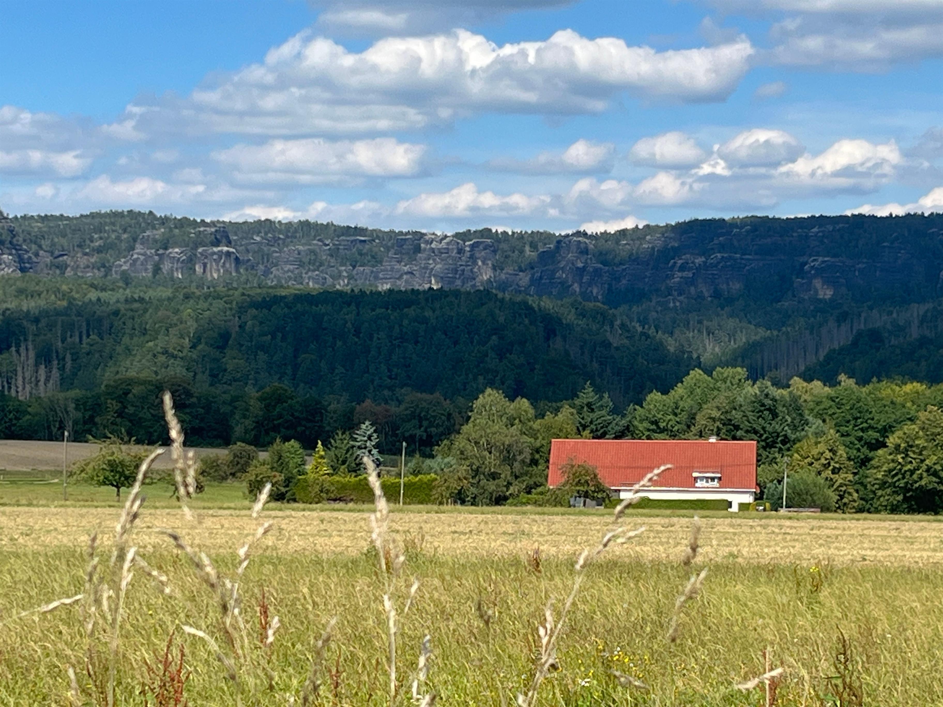 Herzlich willkommen in unserem neuen Feriendomizil "4 Steine Blick" am Ortsrand von Schöna in absoluter Traumlage: ruhig und freier Blick rundrum auf die Schrammsteine, Zirkelstein und Kaiserkrone! Drei Wohnungen liegen unter einem Dach - die Nr 2 ist ebenerdig mit Blick in den großen Garten und 65 m² Platz für bis zu 4 Personen.