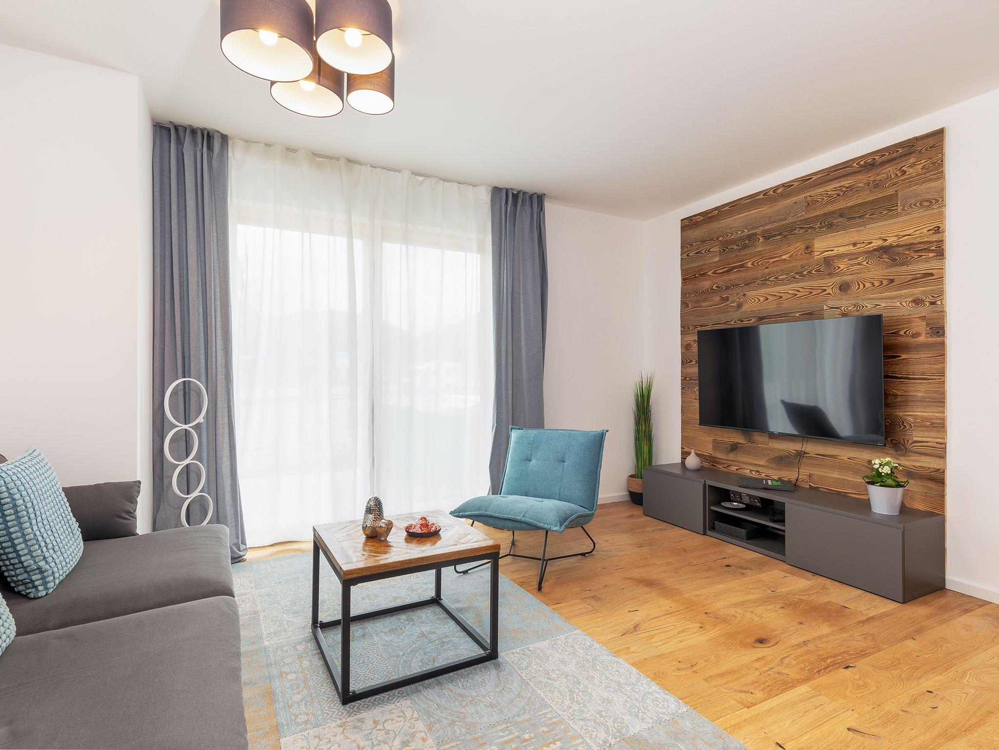 • Gemütliches Wohnzimmer mit 60-Zoll-Flachbildfernseher