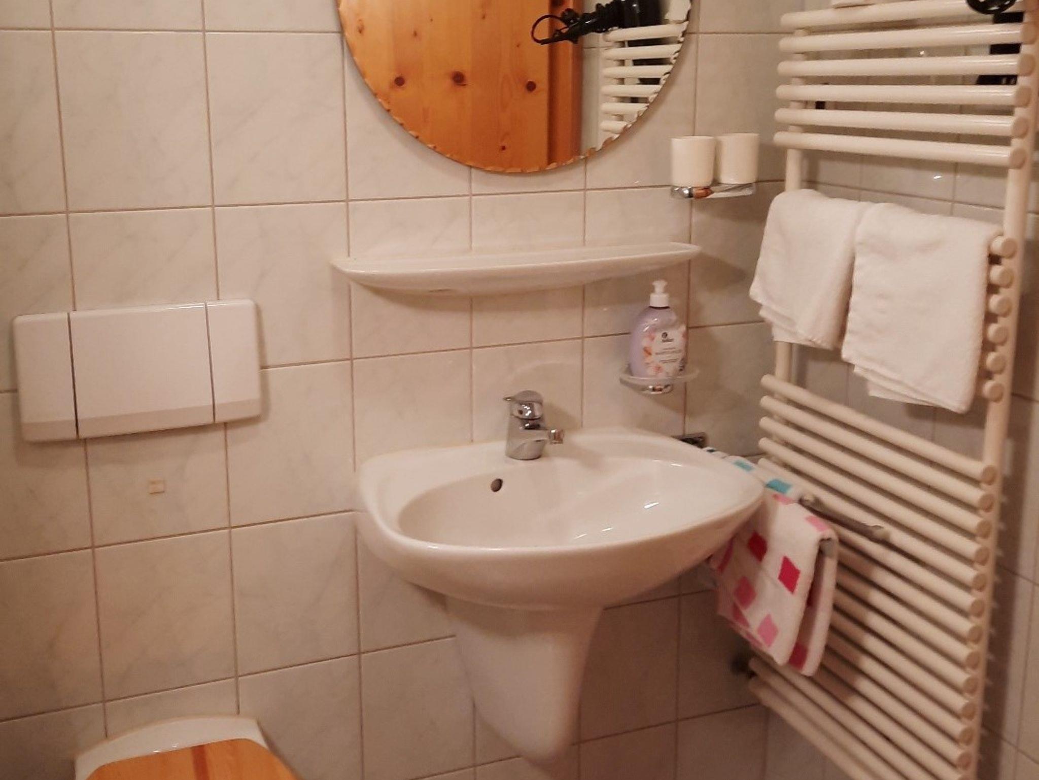Gemütlich, rusitkal eingerichtetes Zimmer (auch als Ferienwohnung nutzbar) mit Balkon zur Südseite (Bergblick). Mit separater Küche und Eßecke. Ein schönes Bad mit großer Dusche sowie WC und Handtuchtrockner.
