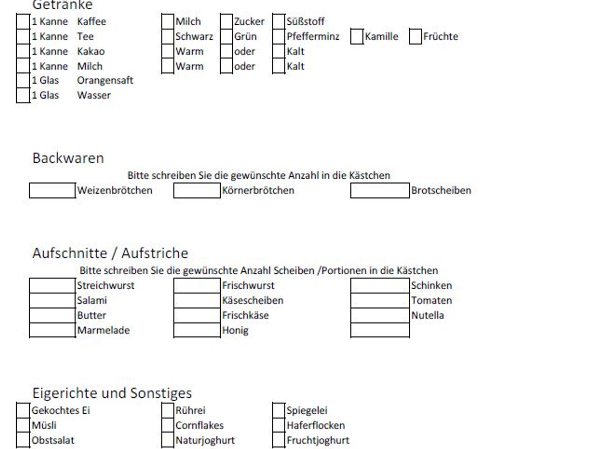Wir bieten Ihnen auf Wunsch auch Frühstück und Zimmerservice gegen Aufpreis in unseren Ferienwohnungen an.