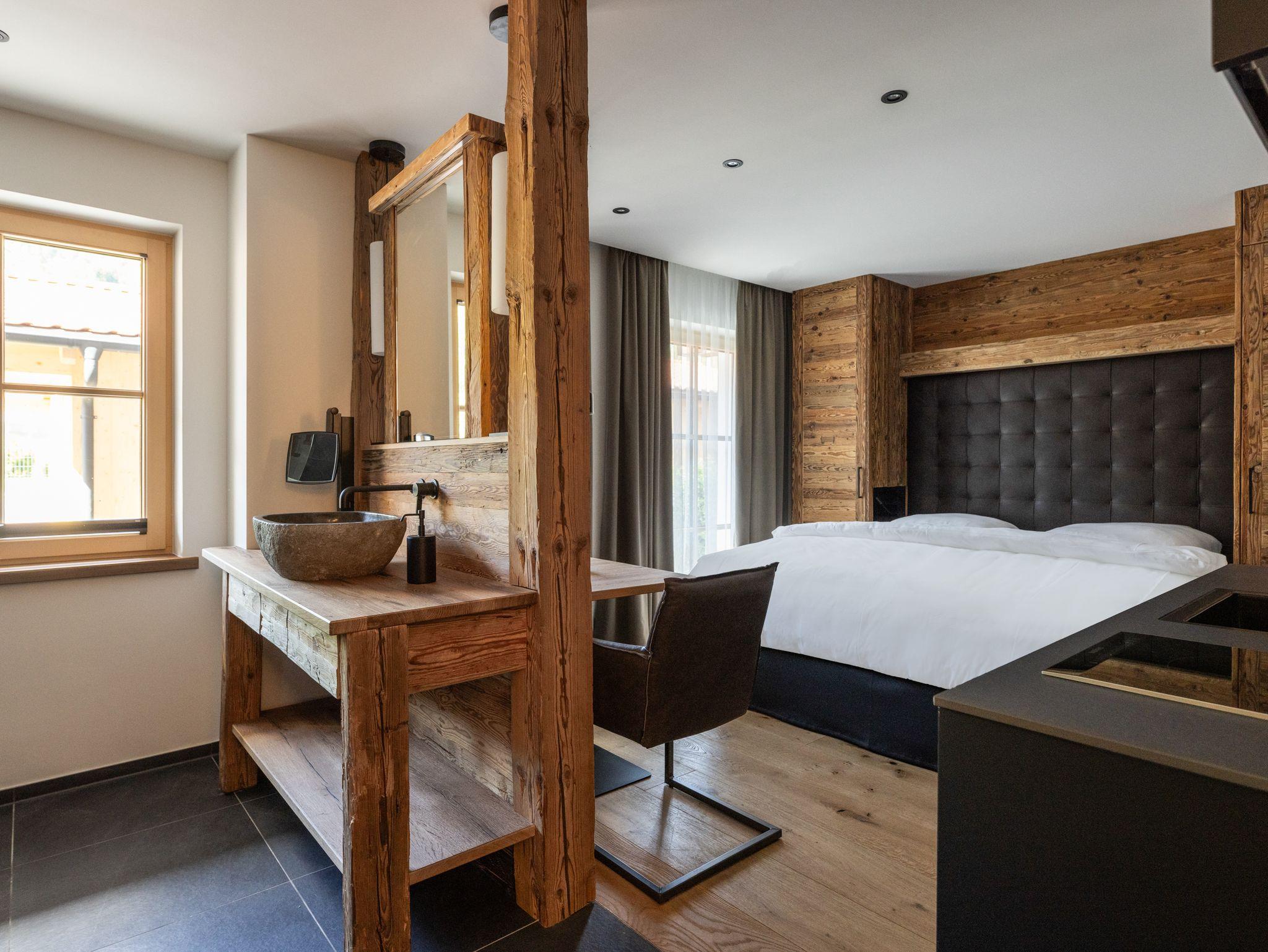 Für alle, die Ruhe mit Stil und Natur mit Komfort verbinden möchten: Sobald Sie Das Denisl betreten, stellt sich ein tiefes Gefühl der Erholung ein. Mitten im Herzen von Reit im Winkl, zentral an der Sonnenloipe, wartet ein neues Apartmenthaus mit 14 stilvollen, hellen Ferienwohnungen voller Flair auf Ihre unvergessliche Zeit im Chiemgau. Viel Altholz, gedeckte Farben, indirekte Beleuchtung, schwarze Armaturen und große Türen zu Balkon oder Terrasse machen Ihre Urlaubstage zu einem echten Design-Erlebnis. Freuen Sie sich auf bestens ausgestattete Küchen, einladende Essbereiche, gemütliche Ledersofas, große Waschtische, kuschelige Boxspringbetten und Regenduschen, die Sie rundum verwöhnen und entspannen lassen. Im Haus zählt der großzügige Aufenthalts- und Eventraum mit 120?m² zu einem beliebten Treffpunkt, um gemütlich zusammenzusitzen, gemeinsam zu feiern oder Tagungen durchzuführen – ausgestattet mit Küche, Theke, Tontechnik, Getränke-/Snackautomat und einer großen Sonnenterrasse mit Blick ins Grüne. Für Aktive Urlauber beginnen direkt vor der Tür idyllische Wanderwege, tolle Biketouren und gepflegte Skiloipen im Winter. Ihre Ausrüstung ist dabei bestens aufgehoben: im großen Skikeller mit Spinden und Skiwerkstatt sowie im Radlhäusl mit Fahrraddusche, Werkstatt und Spinden. Für entspannte Momente sorgt die charmante Sauna im Garten – Ihr Rückzugsort für Körper und Geist. Familien freuen sich über den Spielplatz und das Freibad ganz in der Nähe, aktive Urlauber schätzen schätzen die Haltestelle für den Wanderbus direkt hinter dem Haus. Kostenlose Parkplätze sind in ausreichender Anzahl im Hof vorhanden und wer elektrisch unterwegs ist, findet eine E-Ladestation bei der nahen Tourist-Info.
