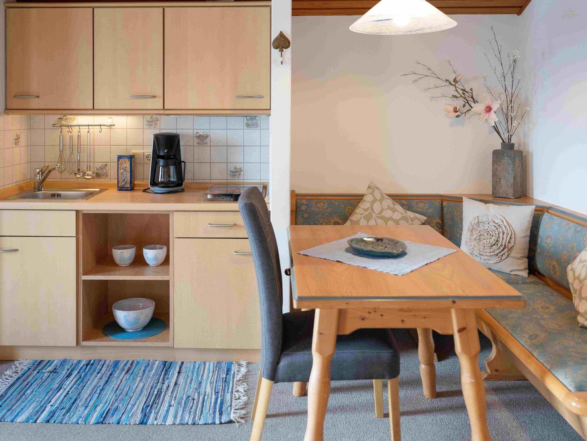 Die Ferienwohnung besitzt eine voll eingerichtete Küche, Dusche und WC, einen Wohnraum mit Fernseher ,sowie einen Balkon. Die Wohnung hat freien Bergblick und ist eine Nichtraucherwohnung. Es können maximal 2 Personen übernachten.