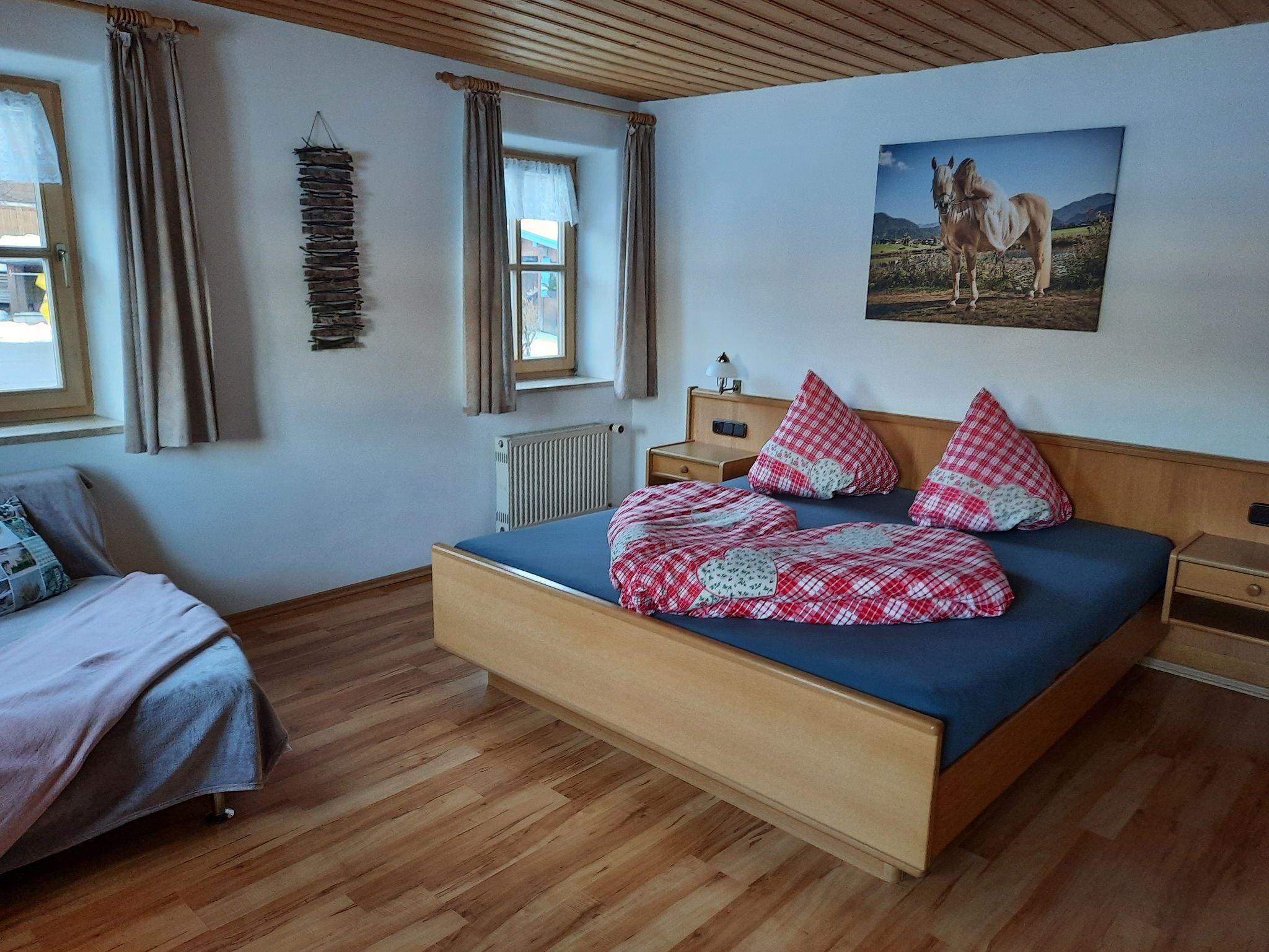 Unsere Familienfreundliche 4-Raum-Ferienwohnung mit 90m² ist geignet für bis zu 6 Personen. In der voll ausgestatteten Küche mit Geschirrspüler und Backofen, finden sie alles was sie brauchen. Die drei liebevoll eingerichteten Schlafzimmer sind mit Doppelbetten ausgestattet. Ein separater Ess- und Wohnbereich lädt zum verweilen ein. Vom Balkon aus genießen Sie einen freien Talblick nach Reit im Winkl.