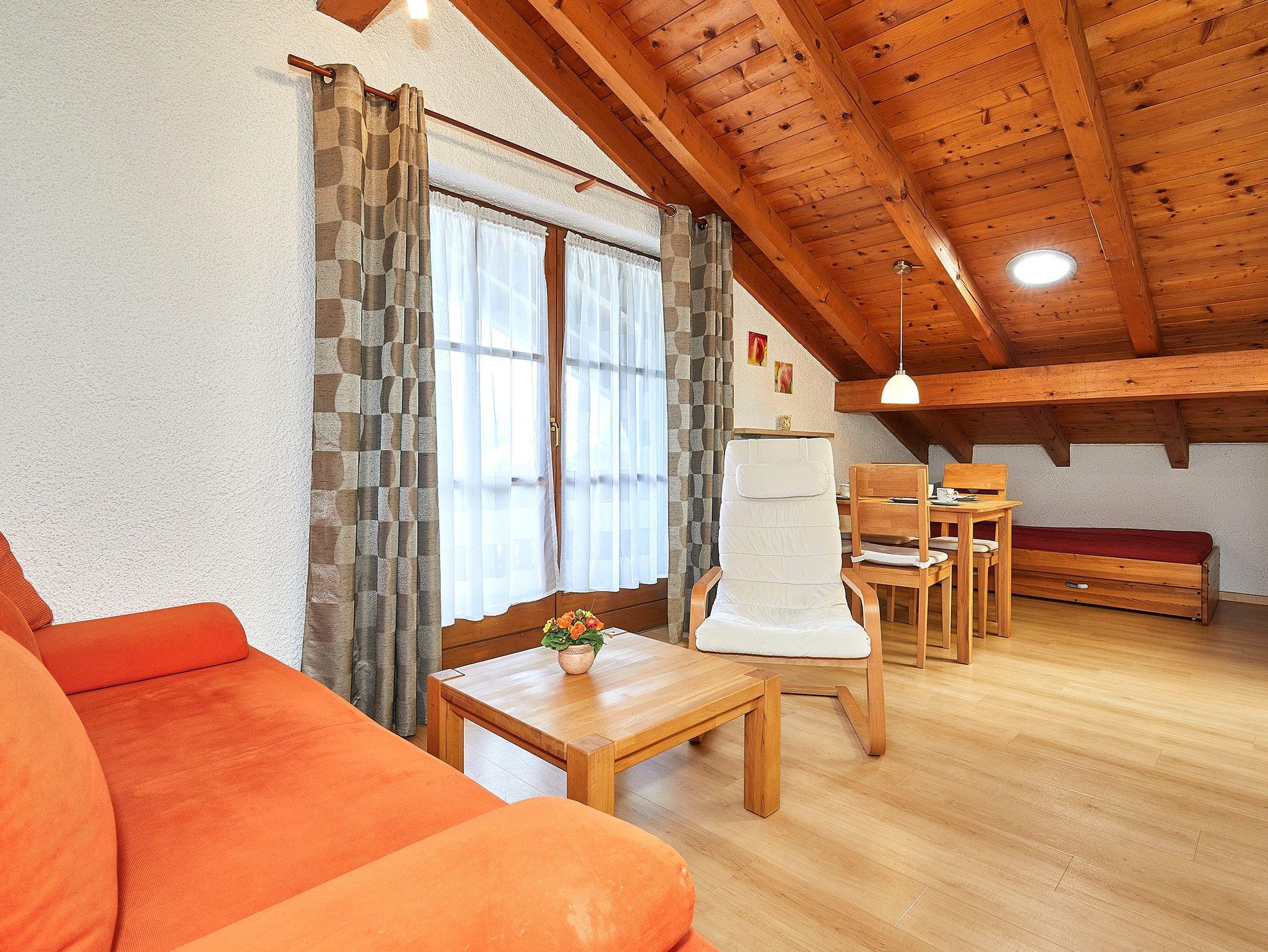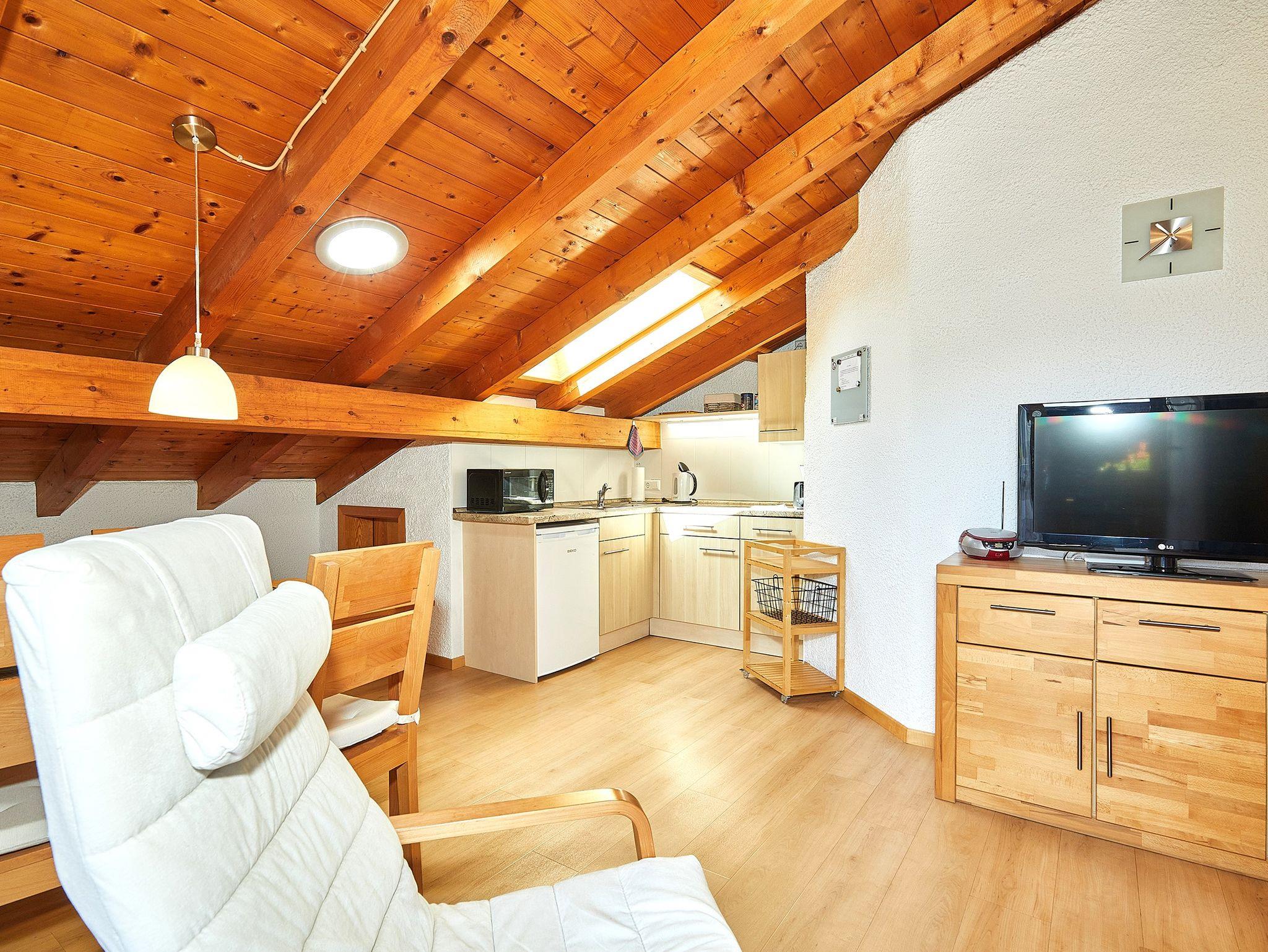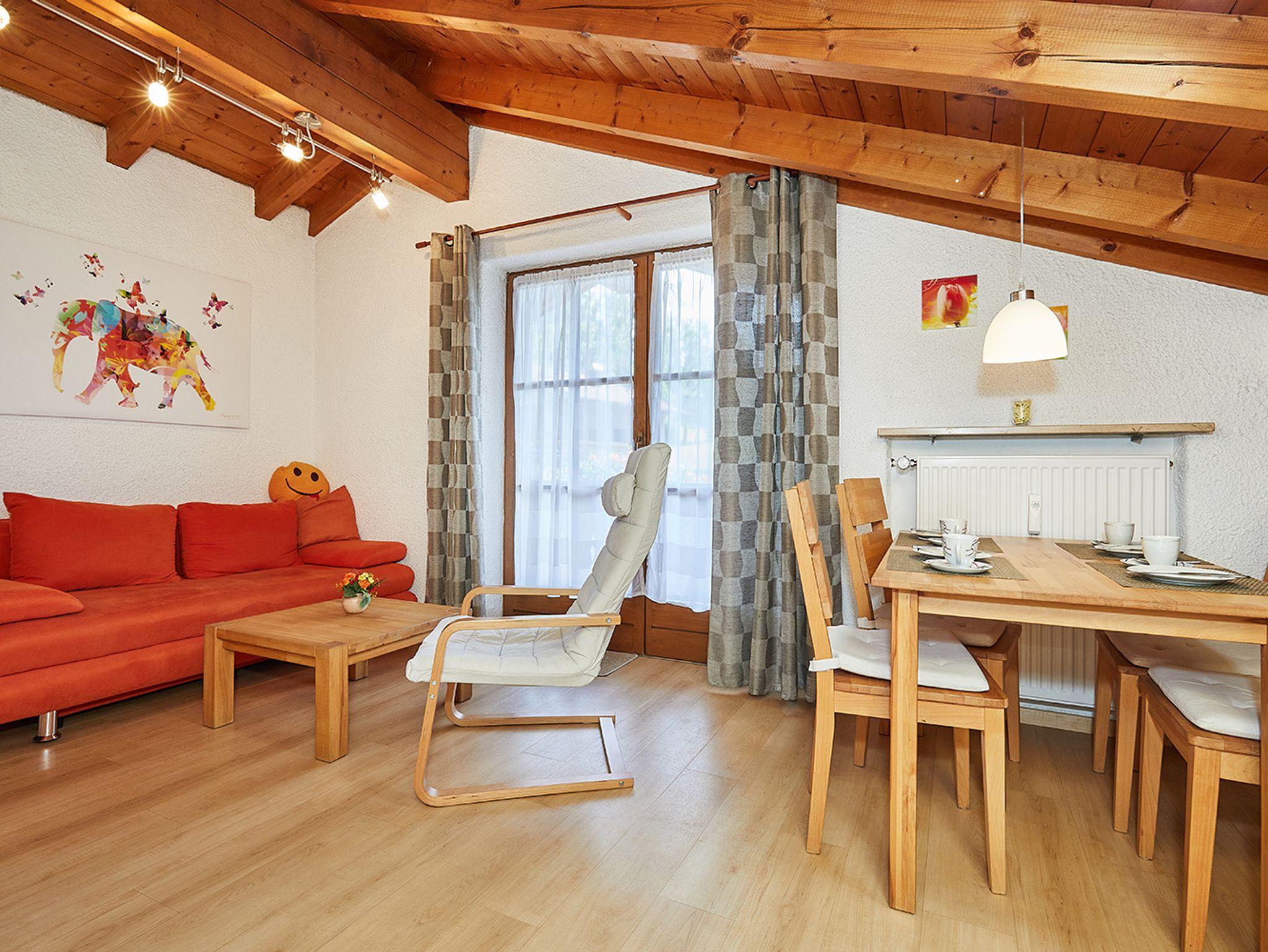 Die Wohnung bietet Platz für bis zu vier Personen, wurde 2013 komplett renoviert und neugestaltet und überzeugt mit moderner Einrichtung. Der Wohnraum verfügt über einen Essbereich, eine gemütliche Sitzgruppe mit Schlafcouch, ein zusätzliches Bett unter der Dachschräge, sowie direkten Zugang zum großzügigen möblierten Ostbalkon. Dieser bietet genug Platz und lädt an warmen Morgenstunden zu einem sonnigen Frühstück ein. Die neue Küchenzeile lässt keine Wünsche offen und ist mit Herd, Kühlschrank, Mikrowelle und Spülmaschine ausgestattet. Im separaten Schlafzimmer empfängt Sie ein bequemes Doppelbett, welches erholsamen Schlaf garantiert. Das Badezimmer ist komplett neu und verfügt über ein WC und eine ebenerdige Dusche. Weiters steht es unseren Gästen frei, WLAN, Telefon, Fernseher und Radio zu verwenden.