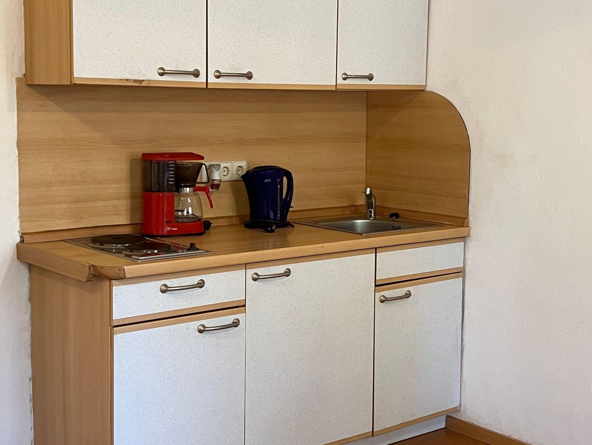 Das Appartement Sonnenuntergang verfügt über einen separaten Hauseingang. Ein Massivholzbett und Korkparkett sorgen für Gemütlichkeit. Eine Küchenzeile mit 2-Plattenherd, Mikrowelle, Toaster, Kaffeemaschine, Wasserkocher und Kühlschrank ist vorhanden. Das Badezimmer hat Dusche und WC, sowie Handtuchwärmer und Fussbodenheizung. Auf dem Balkon können Sie mit Blick auf das Kaisergebirge die Sonnenuntergänge genießen.