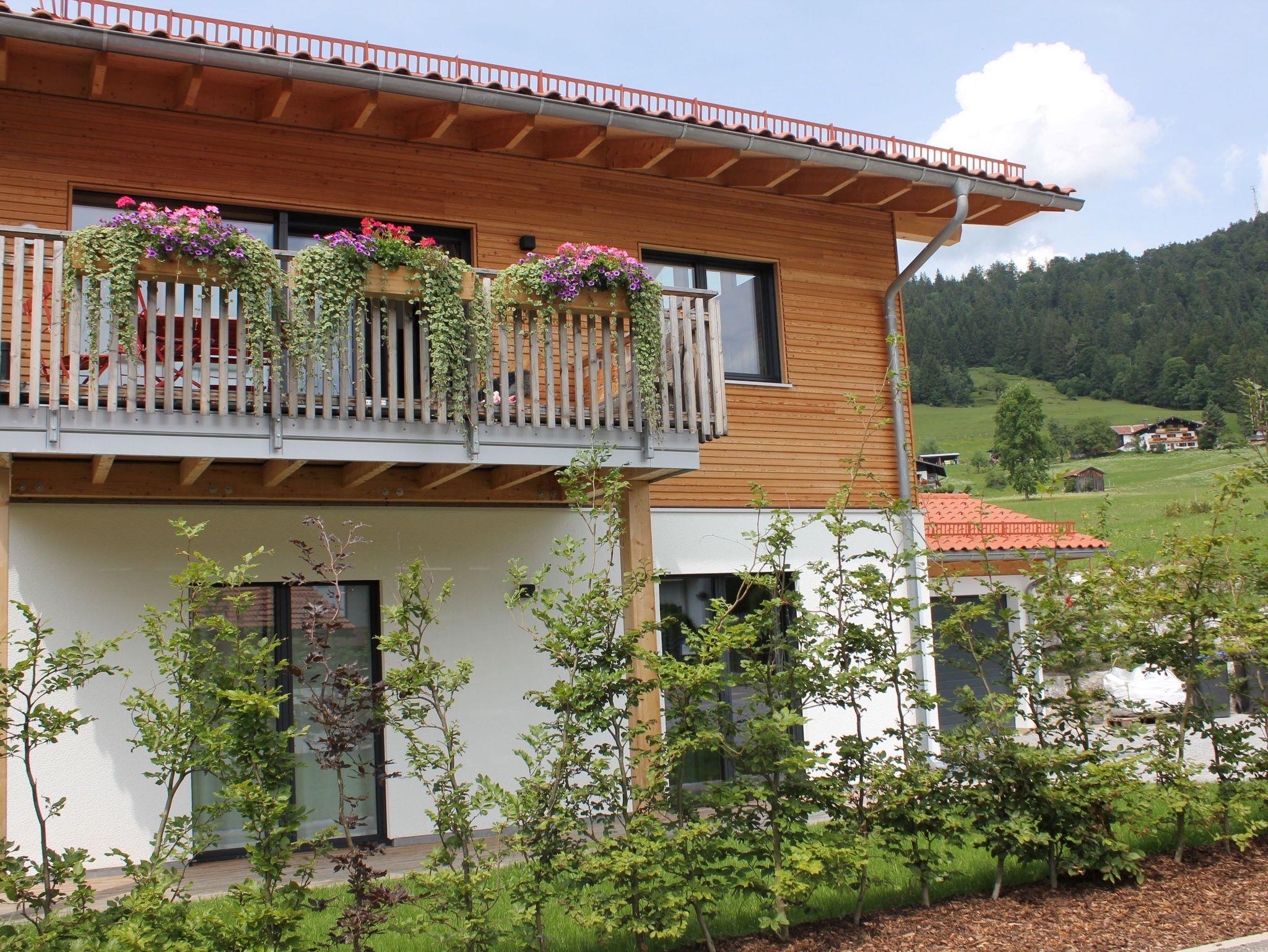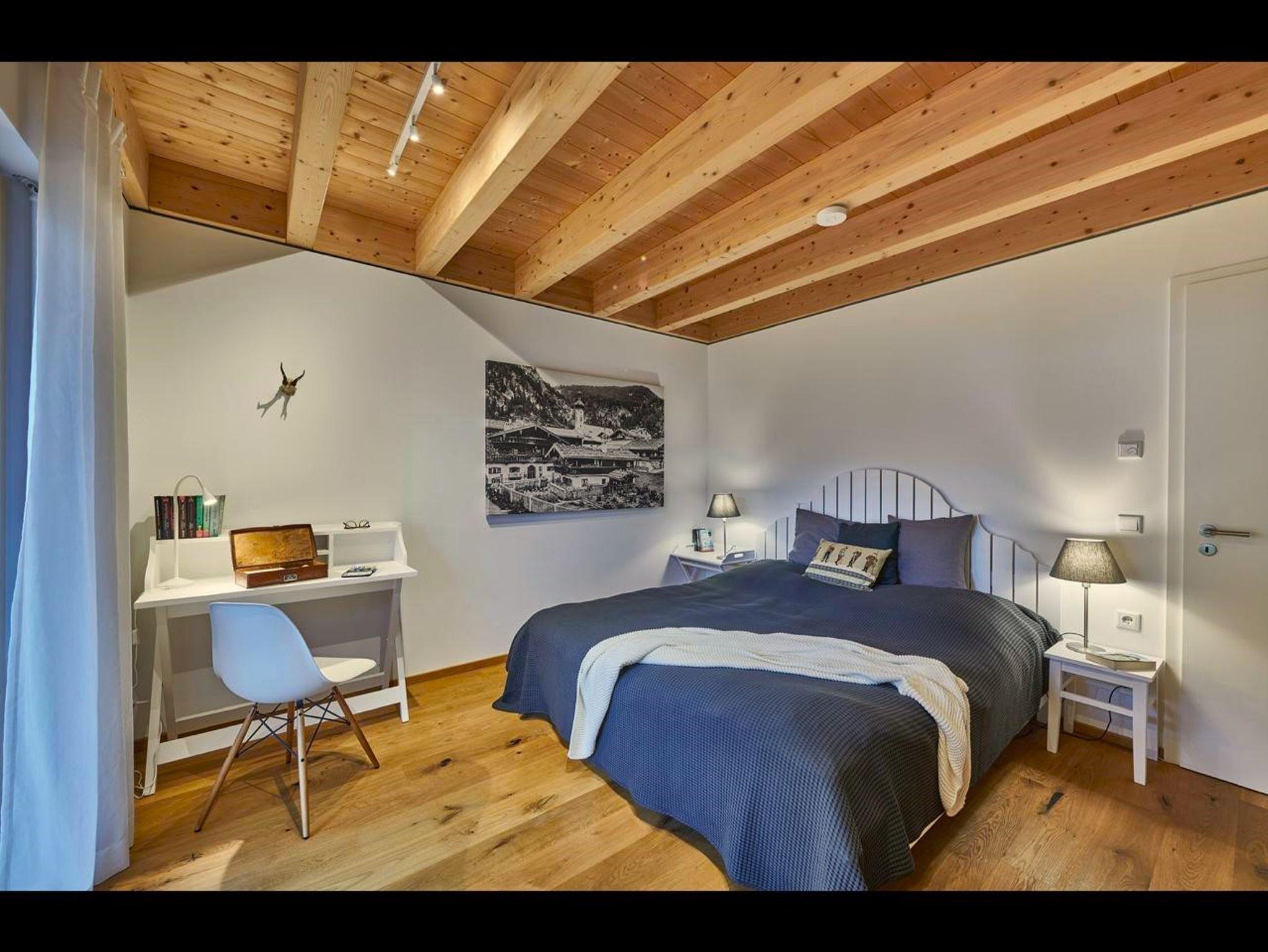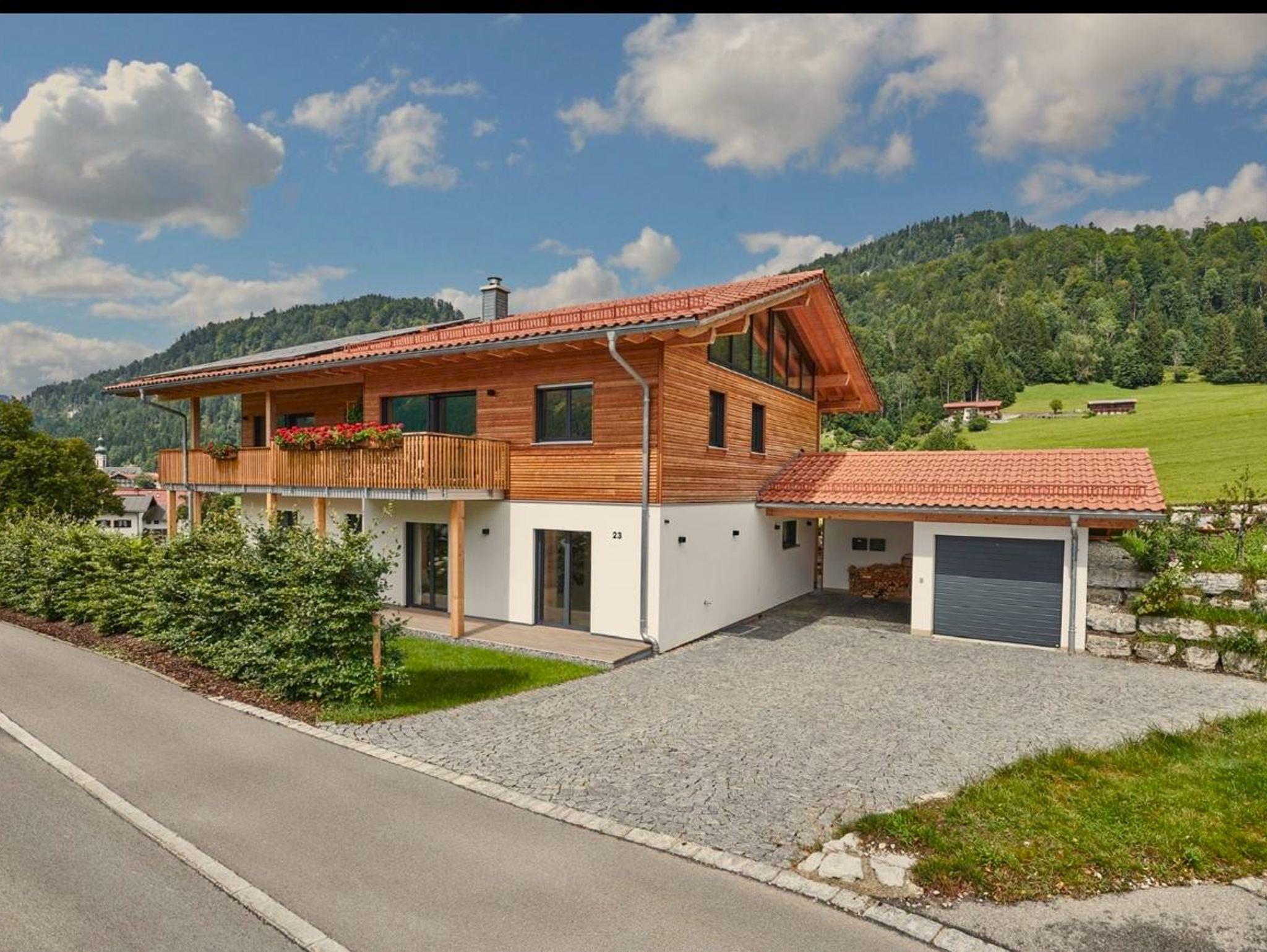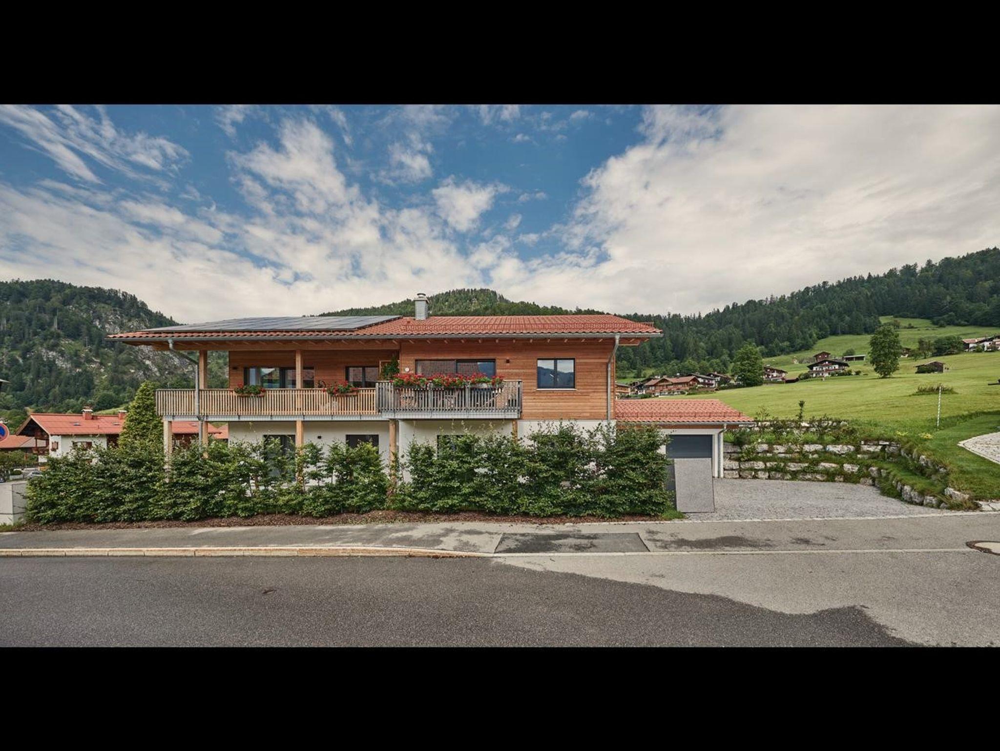 Die nahe dem Zentrum von Reit im Winkl gelegene, moderne und doch gemütliche Doppelhaushälfte Villa Wanderlust bietet höchsten Komfort auf 130 m² für bis zu sechs Personen. Genießen Sie den großartigen Ausblick auf die umliegende Bergwelt vom geräumigen Balkon aus, welcher mit einem Esstisch und Stühlen ausgestattet ist. Die Villa Wanderlust verfügt insgesamt über drei Schlafzimmer, sowie zwei Bäder. Alle Wohn- und Schlafräume sind mit Fußbodenheizung und Eichenparkett ausgestattet. Im Erdgeschoss befinden sich neben der Eingangsdiele zwei mit großen Doppelbetten ausgestattete Schlafzimmer, welche direkten Zugang zur Terrasse und dem Garten bieten, sowie ein luxuriöses Bad mit ebenerdiger Regendusche und Badewanne. Für Kinder stehen zudem ein Reisebett und ein Hochstuhl bereit. Im Obergeschoss beeindruckt vor allem ein offenes Wohnkonzept, sowie eine große Raumhöhe. Die Küche verfügt über eine Kochinsel und hochwertige Elektrogeräte wie Kühlschrank, Gefrierschrank, Induktionsherd, Backofen, Geschirrspüler, Kaffeemaschine und Nespressomaschine sowie Koch- und Backutensilien. Im Wohnraum laden ein großer Esstisch und eine bequeme Sitzecke mit Sofa, Sesseln und TV (inkl. Kabel, Sat, Netflix, Bose Radio) zu gemütlichen und gemeinschaftlichen Abenden ein. Hier finden Sie auch das dritte Schlafzimmer mit Doppelbett sowie ein weiteres Badezimmer. Der Keller ist mit einer hauseigenen Sauna inklusive Dusche und Ruheliegen ausgestattet und bietet damit Entspannung pur. Hier steht Ihnen außerdem eine Waschmaschine und ein Trockner zur Benutzung. Im Außenbereich sind Liegestühle und eine Feuerschale, sowie ein Stellplatz für Ihr Auto vorhanden. Der malerische Ortskern von Reit im Winkl ist in nur wenigen Minuten zu Fuß bequem erreichbar. Einige der besten Restaurants und Cafés, sowie eine Vielzahl an Geschäften laden zu einem gemütlichen Ortsbummel ein. Auch Wanderer kommen hier auf ihre Kosten, denn viele der Wege starten direkt im Zentrum. WLAN und freier Eintritt ins Freibad sind einige der Vorteile bei uns. Die Villa Wanderlust ist ein Biohaus von Baufritz ®. Alle Baumaterialien sind baubiologisch geprüft und schadstofffrei. Bei der Einrichtung wurde auf Nachhaltigkeit geachtet. Die Küche besteht aus 100% recycelten Materialien. Viele Kunst- und Designelemente sorgen für eine hohe Wohnqualität.