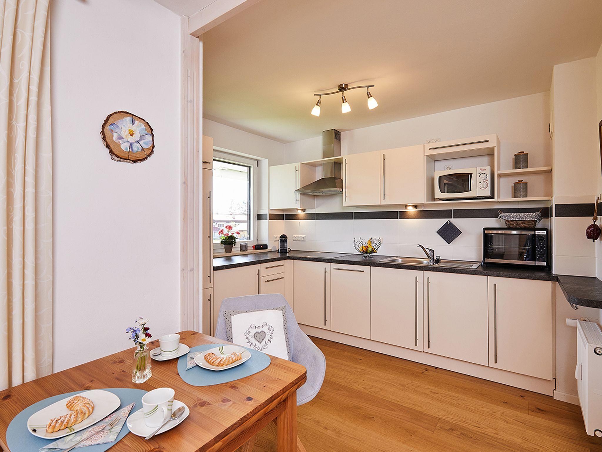 Die Küche ist komplett ausgestattet und ein besonderes Highlight ist der geschützte, tiefe Südbalkon, der einen fantastischen Ausblick bis zum Unterberg und Kaisergebirge ermöglicht. Wir freuen uns auf Ihren Besuch!