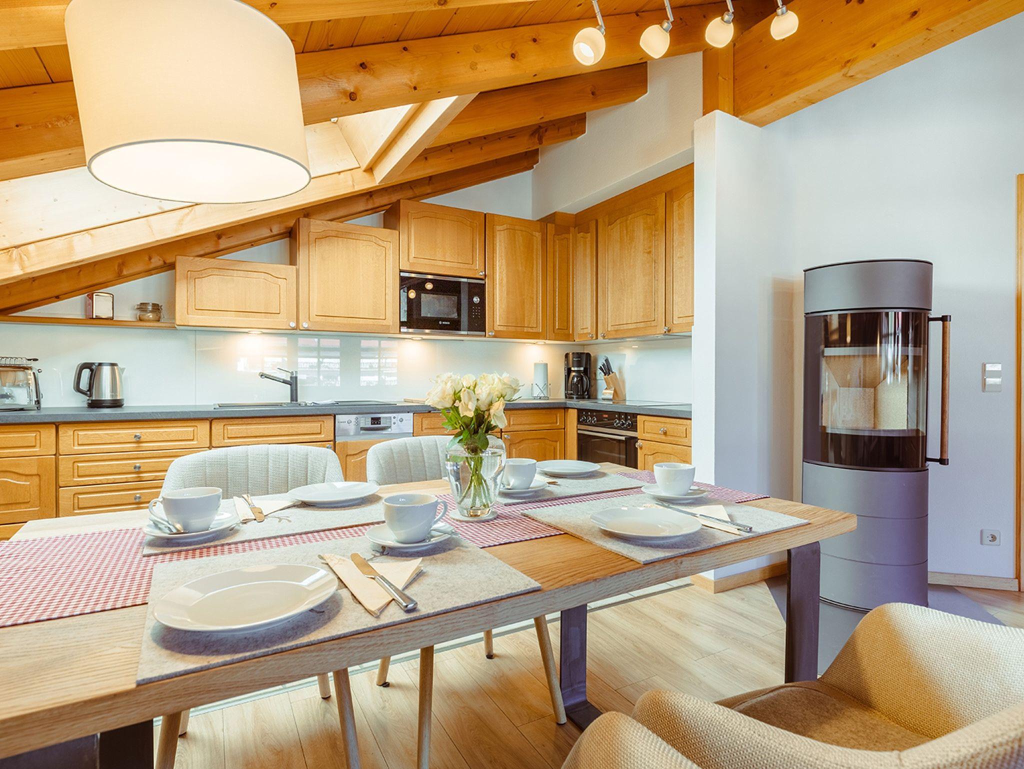 Komfortable Zwei-Raumwohnung mit einem separatem Schlafzimmer und einem Badezimmer. Die Wohnung verfügt über eine Badewanne, Dusche und ein WC. In der Küche ist ein Geschirrspüler, ein Herd und Backofen, eine Mikrowelle und ein Kühlschrank vorhanden. Die Wohneinheit liegt im Dachgeschoss. Außerdem gibt es ein Radio, Soundbar und einen OLED- Fernseher. Es gibt kostenfreies W-lan. Waschmaschine und Trockner sind ebenfalls vorhanden.