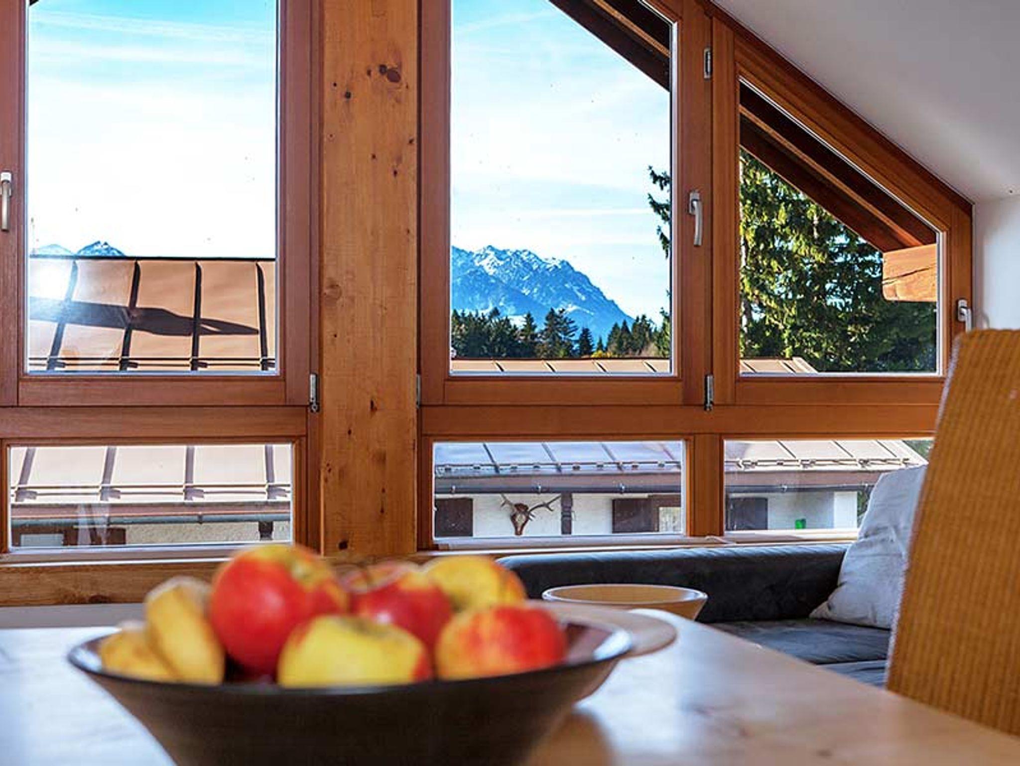 Treten Sie ein in diese großzügige Dachwohnung, die auf einer eigenen Etage Ihre ganz persönliche Auszeit verspricht. Zwei Schlafzimmer, zwei Balkone und ein wunderschöner Ausblick auf die majestätischen Berge schaffen eine Atmosphäre, in der Sie sich rundum wohlfühlen werden. Die komplett ausgestattete Küche lässt keine Wünsche offen und lädt zu gemeinsamen Kochabenden ein. Der große Wohnbereich mit einem gemütlichen Ecksofa und einem Flachbild-TV ist der perfekte Ort, um den Tag bei einem guten Film oder einem spannenden Buch ausklingen zu lassen. Die beiden Schlafzimmer bieten nicht nur Ruhe, sondern auch einen Platz für Entspannung – sei es im gemütlichen Doppelbett oder auf der Couch mit Blick auf die Natur. Das Badezimmer ist ein Ort der Erfrischung mit einer modernen Dusche und einem Fön. Genießen Sie die frische Bergluft auf den Balkonen – einer nach Osten, der andere nach Westen – und lassen Sie sich von den wechselnden Lichtstimmungen verzaubern.