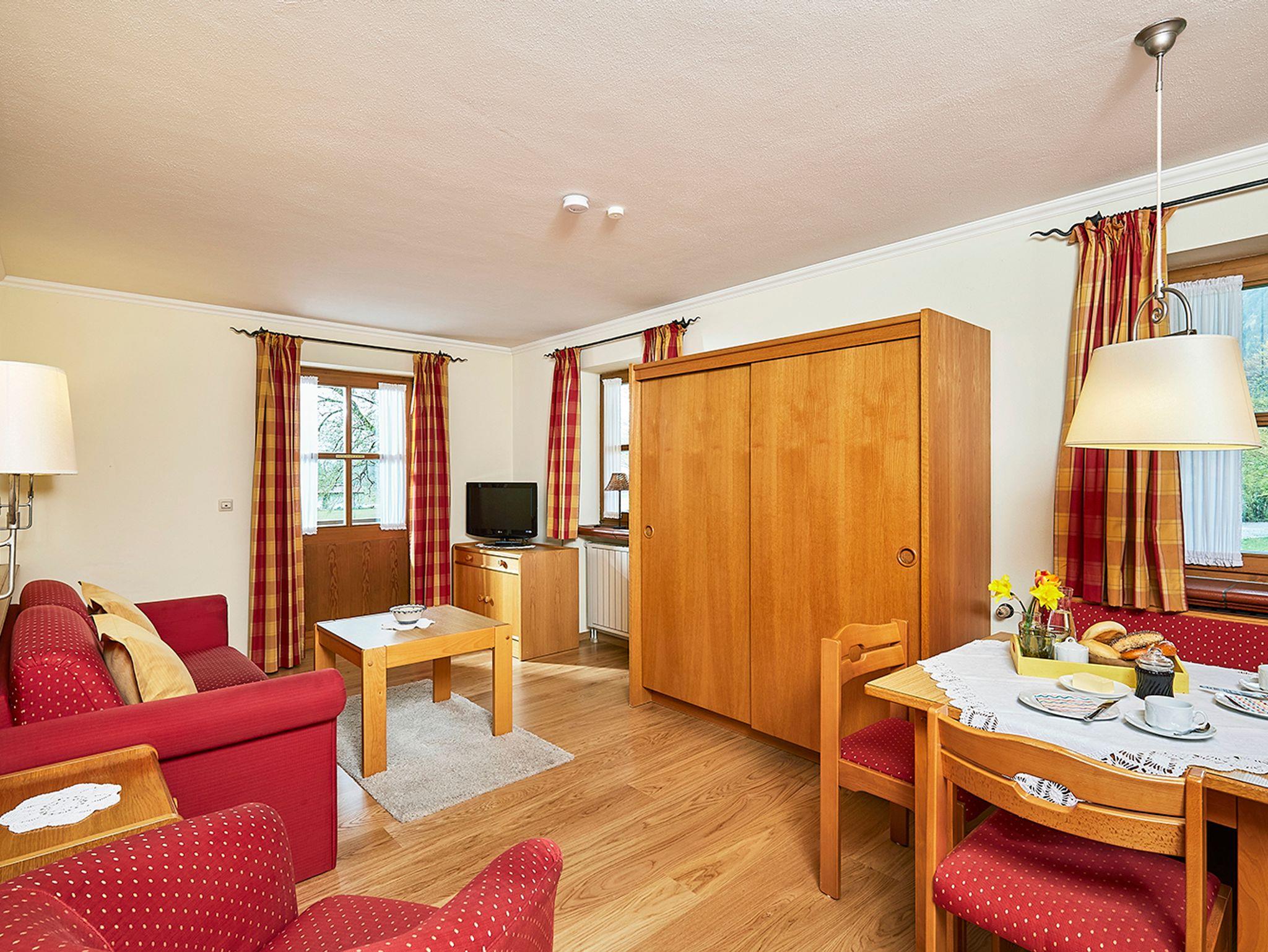 Komfortabel und gemütlich eingerichtete Zwei-Raum-Ferienwohnung, ca. 37 qm im 1. OG. Großer umlaufender Balkon mit Holzmöbeln .Freier Blick auf Kaisergebirge und Langlaufstadion. Komplett ausgestattete kleine Küche. Bett- und Tischwäsche,sowie Handtücher sind ausreichend vorhanden. Flat/TV, Radio/CD-Player. W-LAN kostenfrei. Allergikerfreundliche Wohnung mit Parkettboden.