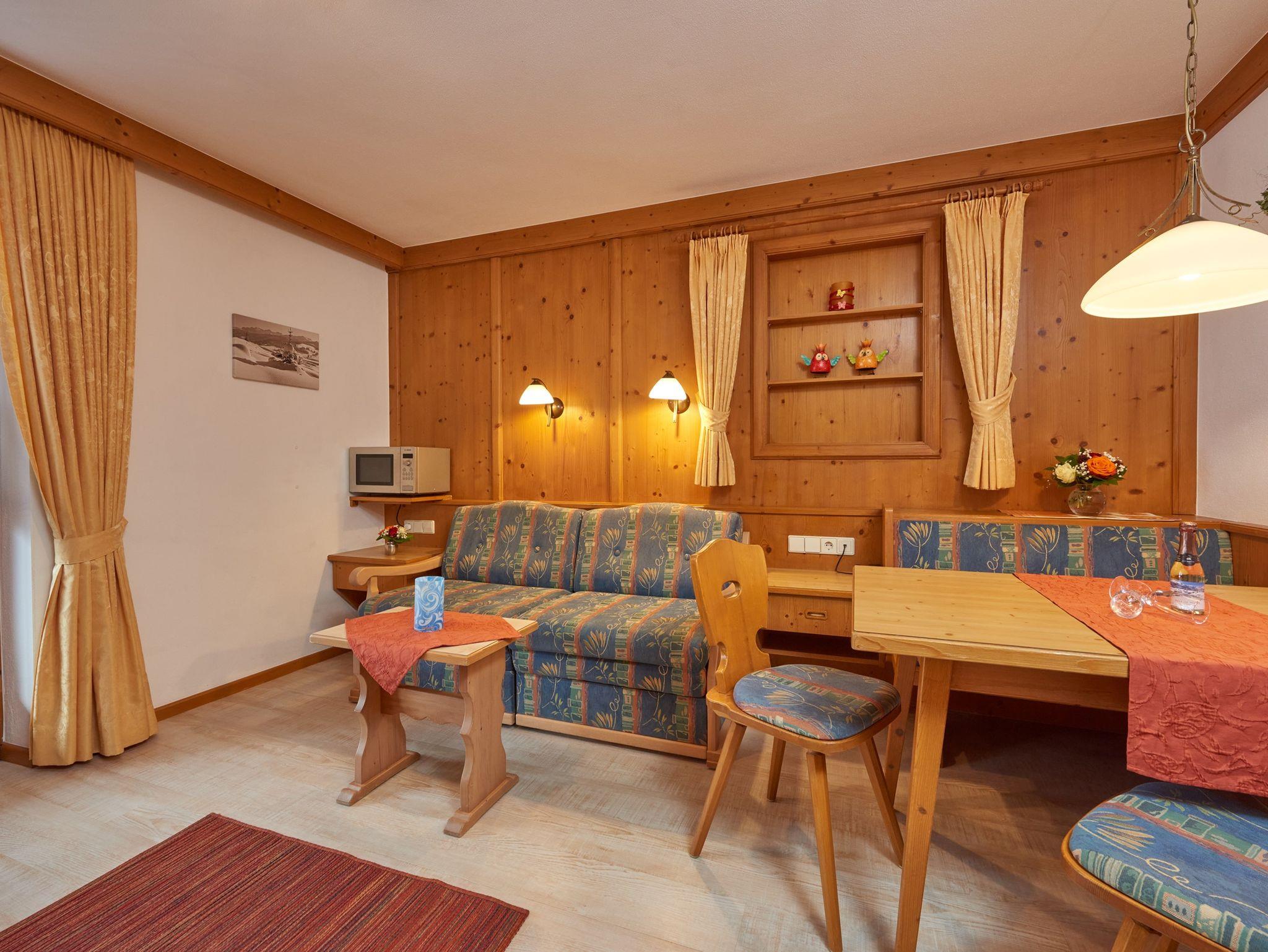 Im behaglich eingerichteten Wohnzimmer befindet sich eine Sitzgruppe, die zum Schlafsofa umfunktioniert werden kann. Bettwäsche und Handtücher sind ausreichend für Sie vorhanden. Handtücher werden einmal pro Woche gewechselt. Wellnessbereich (Sauna...) im Winter vom 18.12. - 08.03. inklusive, sonst 14,00 € pro Pers./Nutzung