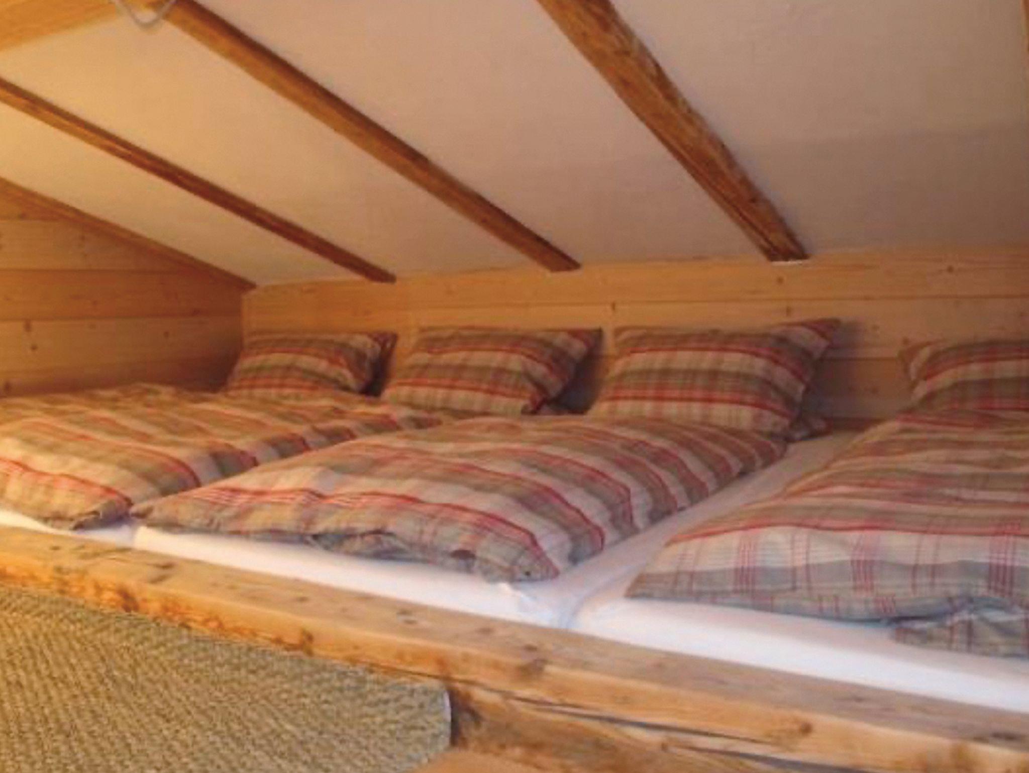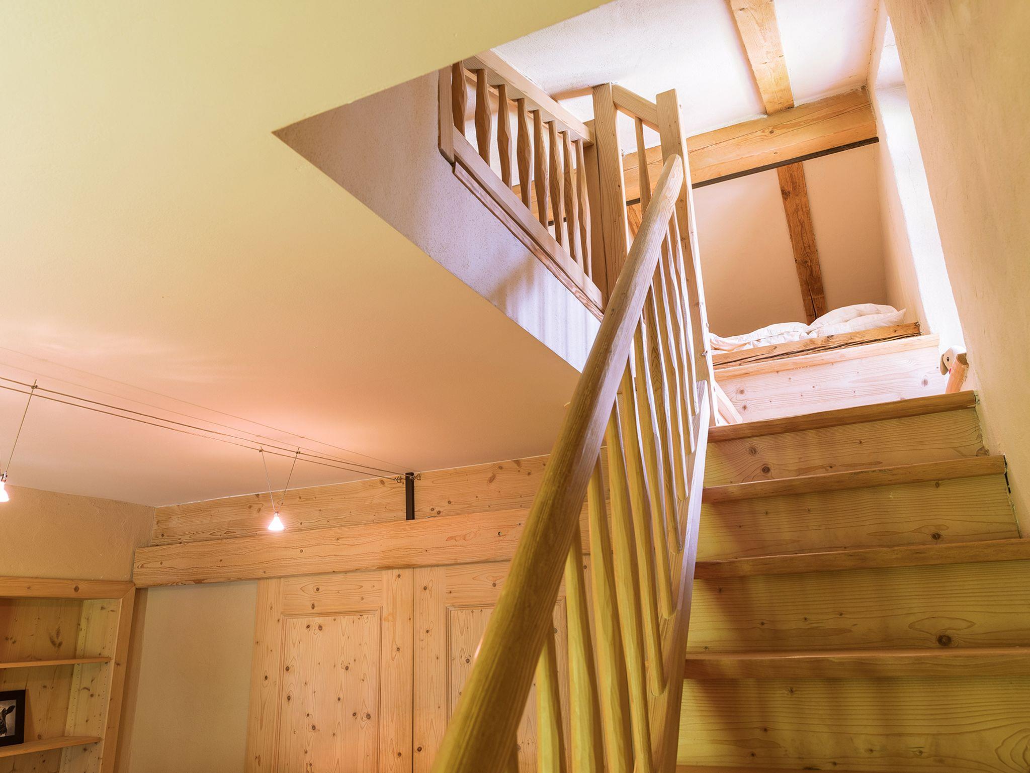 Das Apartment liegt im ersten Stock und verfügt über einen nach Westen ausgerichteten möblierten Balkon. Es ist ausgelegt für zwei mal zwei Erwachsene mit vier Kindern oder für acht Personen, die sich nicht an der Dachschräge des Schlafbodens stören.