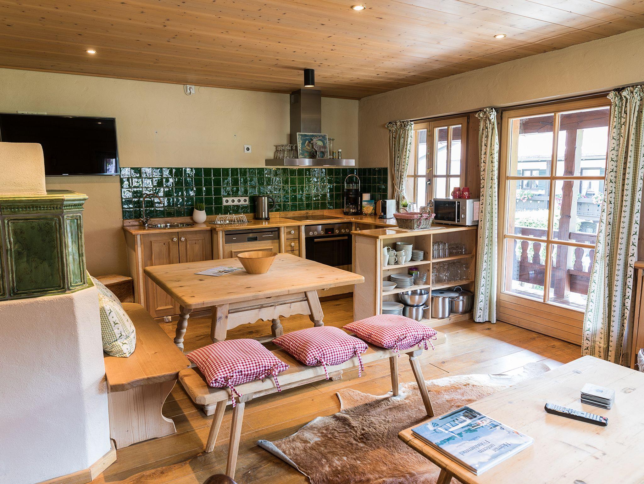 Alpenchalet, Großes Maisonette-Apartment im modernen Landhausstil mit Kachelofen