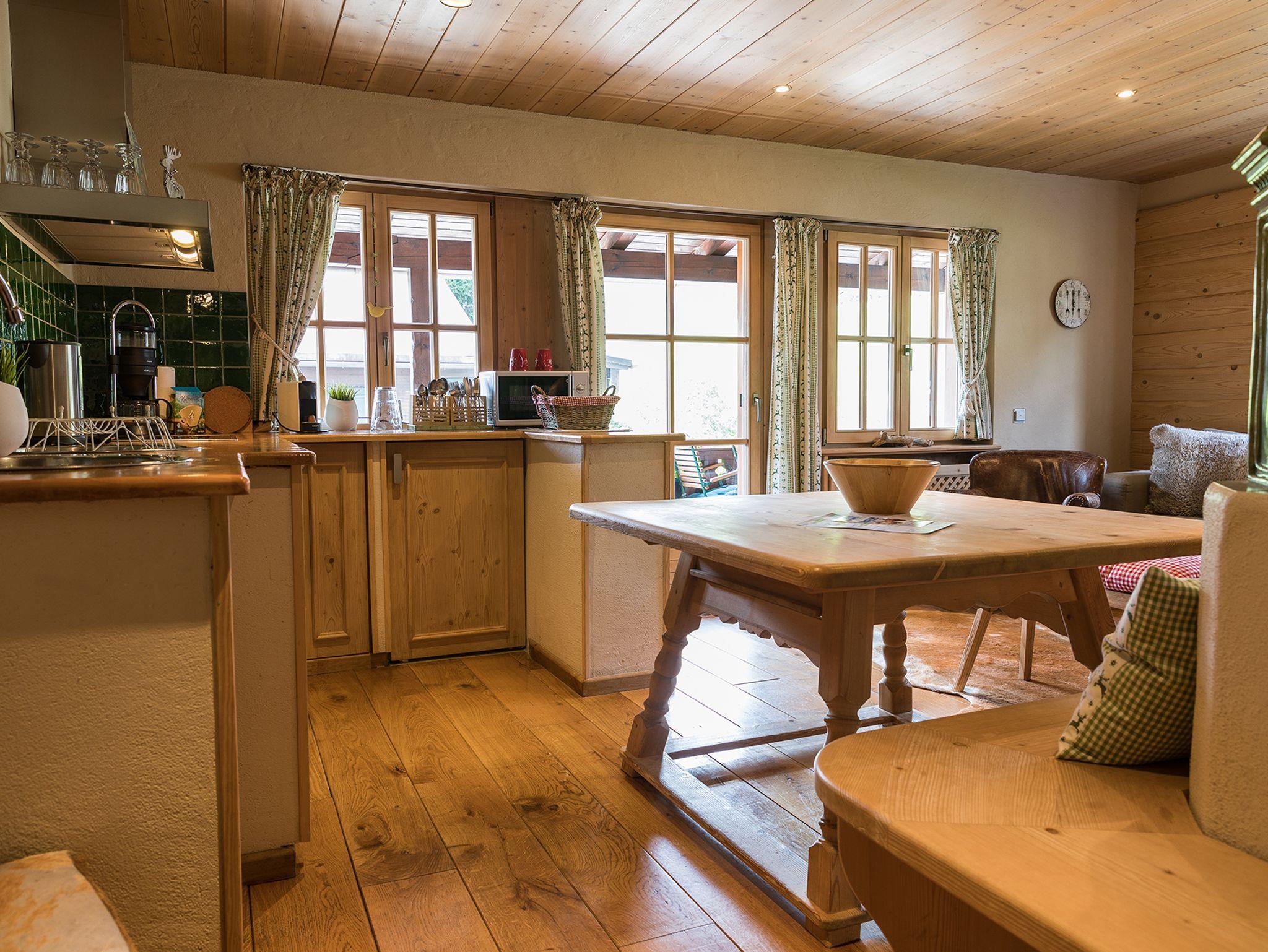 Das Haus, im Stil eines Tiroler Landhauses, befindet sich in einer ruhigen Seitenstraße und bietet Blick auf die beeindruckende Bergkulisse von Fellhorn und Zahmer Kaiser. Alle exklusiv eingerichteten Apartments verfügen über Boxspring-Betten, ein oder zwei Flat-Screen-TVs, eine gut ausgestattete Küchenzeile, Espresso-Maschine mit Bio-Kapseln, alten Bauernmöbeln, sowie einer Grundausstattung an Handtüchern und Bettbezügen. Die stilvoll ausgestatteten Bäder verfügen über Dusche, WC, große Spiegel und Stein-Waschbecken sowie teilweise über Badewanne, Handtuch-Heizkörper und Fußbodenheizung. Unser Wasser ist reinstes Quellwasser. Alle Apartments haben einen möblierten Balkon mit Bergblick oder eine ausgestattete Terrasse mit privatem Gartenanteil.