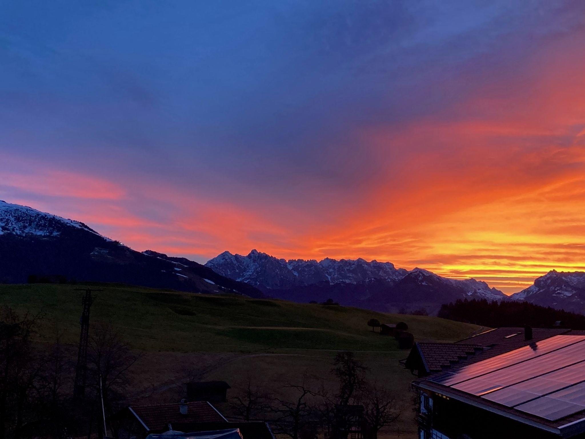 Genießen sie die Ruhe und eine traumhafte Aussicht zum Zahmen und Wilden Kaisergebirge, über den 18-Loch-Golfplatz Reit im Winkl-Kössen und im Winter auf die verschneiten Spazierwege Reit im Winkls. Ein Ausgangspunkt für erholsame Wanderungen.