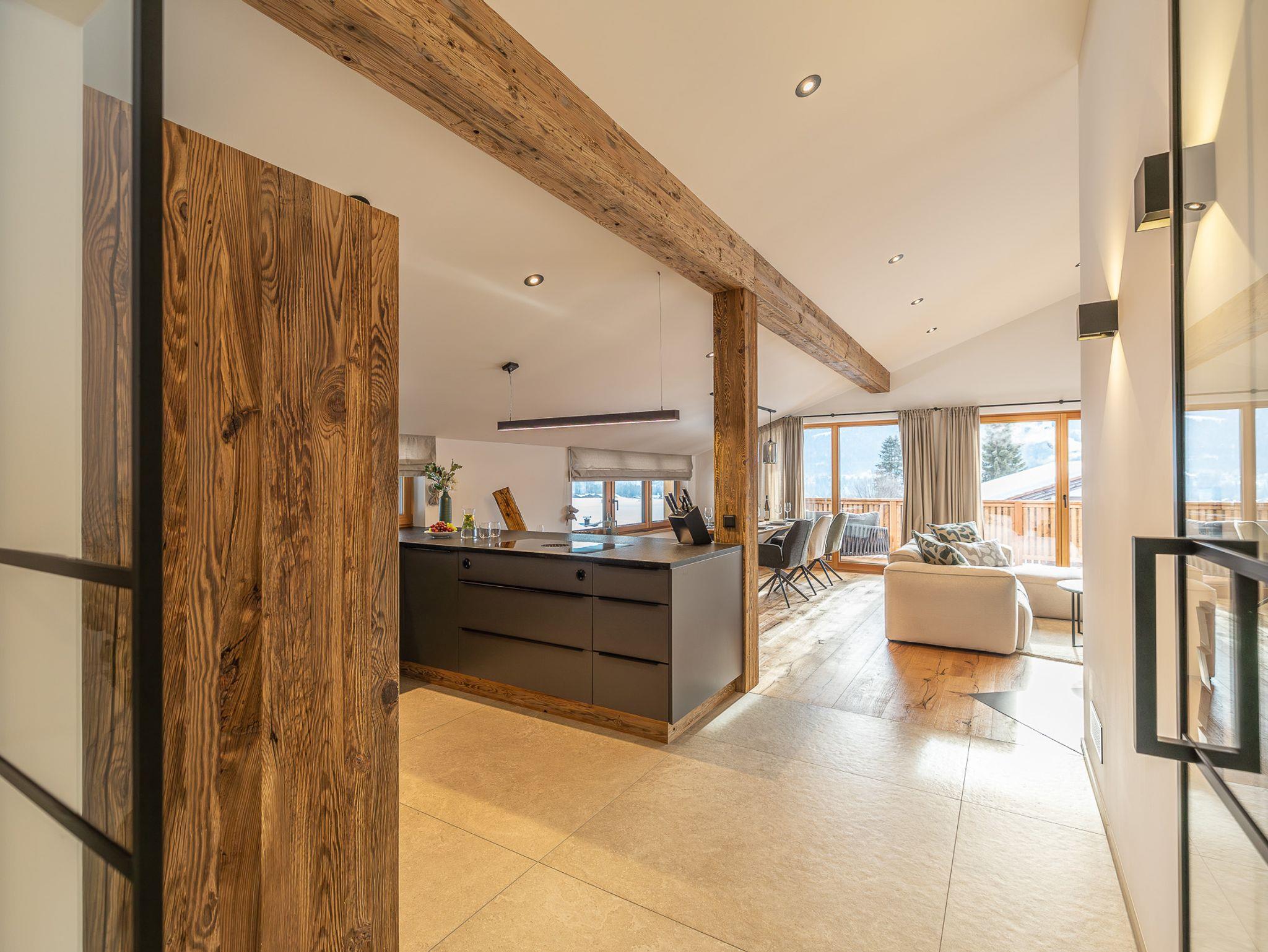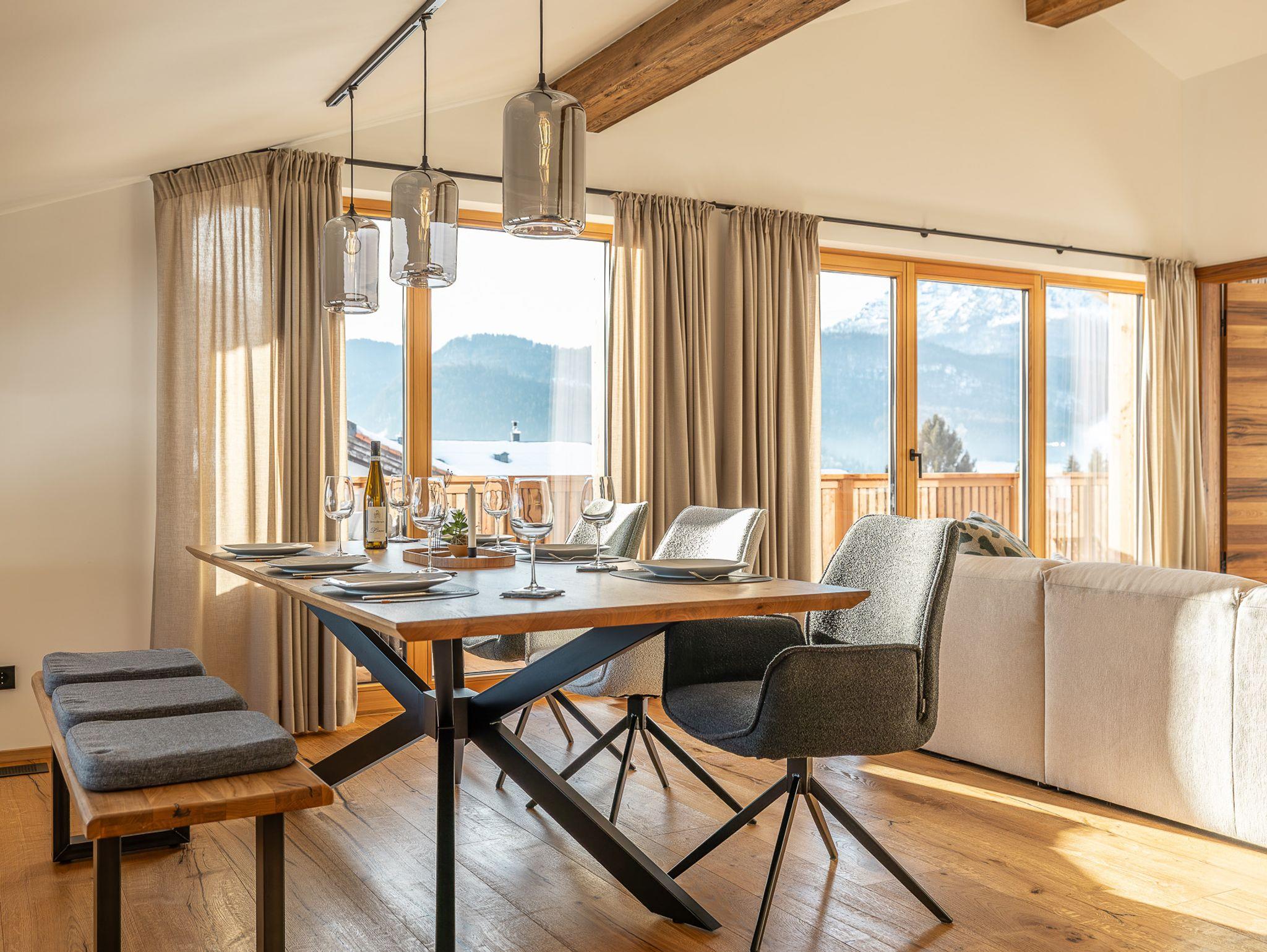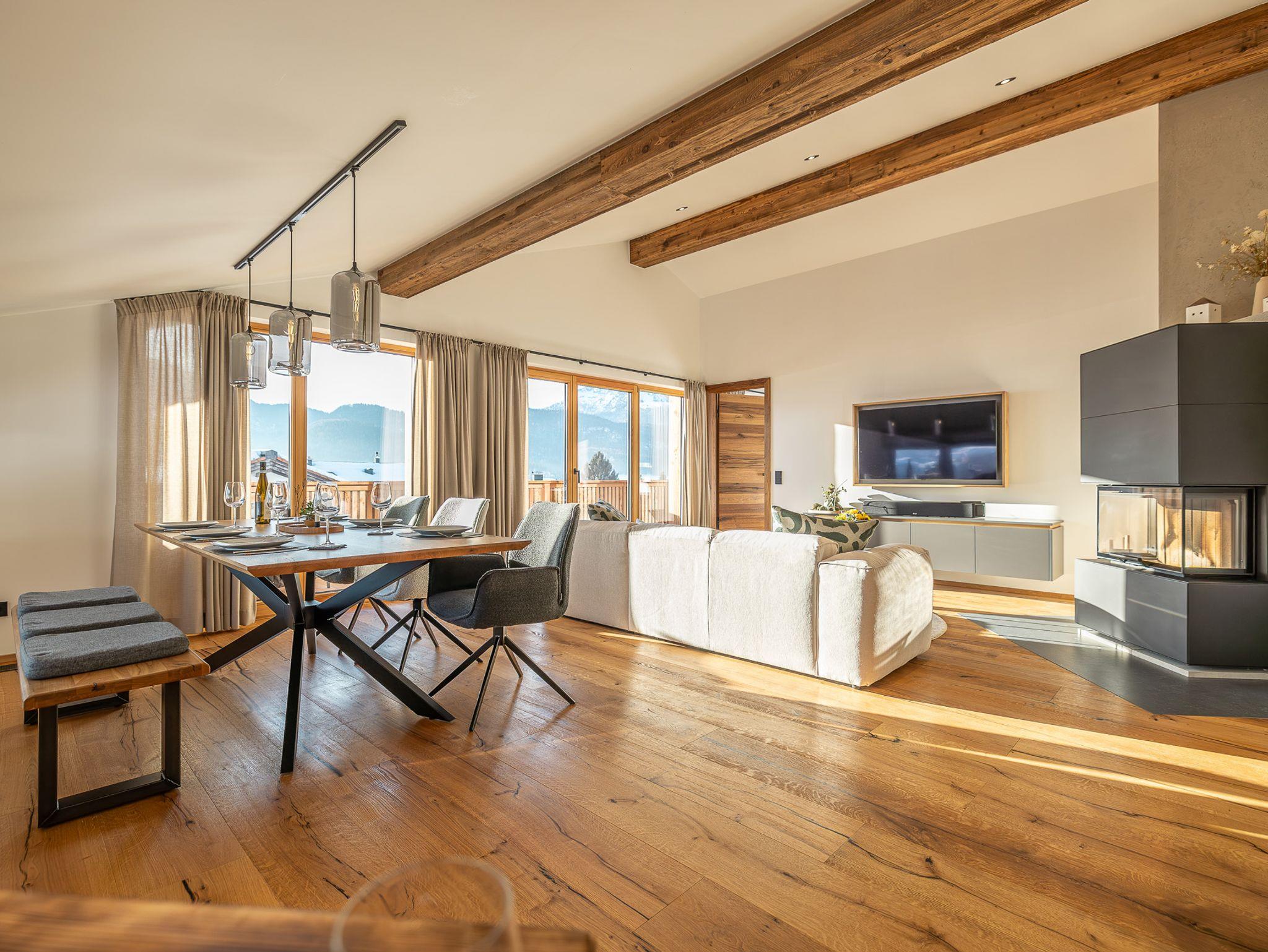 Das neu erbaute Chalet Roahäusl in Reit im Winkl bietet auf 140 Quadratmetern Wohnfläche ein luxuriöses und gemütliches Ambiente, das ideal für einen erholsamen Aufenthalt in den bayerischen Alpen ist. Das charmante Chalet vereint traditionelle Architektur mit modernen Annehmlichkeiten und schafft so eine perfekte Balance zwischen rustikalem Flair und zeitgemäßem Komfort. Die großzügige Wohnfläche erstreckt sich über mehrere Räume, die stilvoll eingerichtet sind und viel Platz für Familien, Paare oder kleine Gruppen bieten. Hier können Sie entspannte Stunden im gemütlichen Wohnzimmer verbringen, in der voll ausgestatteten Küche köstliche Mahlzeiten zubereiten oder in einem der komfortablen Schlafzimmer zur Ruhe kommen. Die hochwertige Ausstattung und die liebevollen Details sorgen dafür, dass Sie sich vom ersten Moment an wie zu Hause fühlen