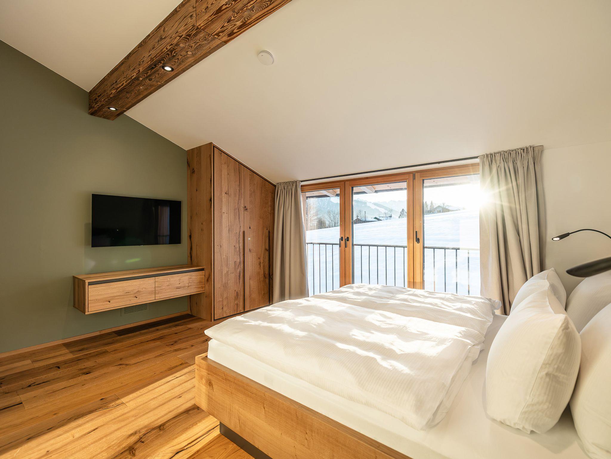 Jedes Schlafzimmer besitzt eine hochwertige Ausstattung sowohl schlaftechnisch als auch funktional. Um eine angenehme Atmosphäre zu schaffen, sind die Betten indirekt beleuchtet und verfügen über gut einstellbare Leselampen sowie auch Steckdosen mit integrierten USB und USB-C Anschlüssen. Zwei der Schlafzimmer besitzen einen modernen Smart-TV inklusive einem großen Streamingangebot (Magenta TV). Es sind in jedem Schlafraum Einbauschränke für die Kleidung vorhanden.