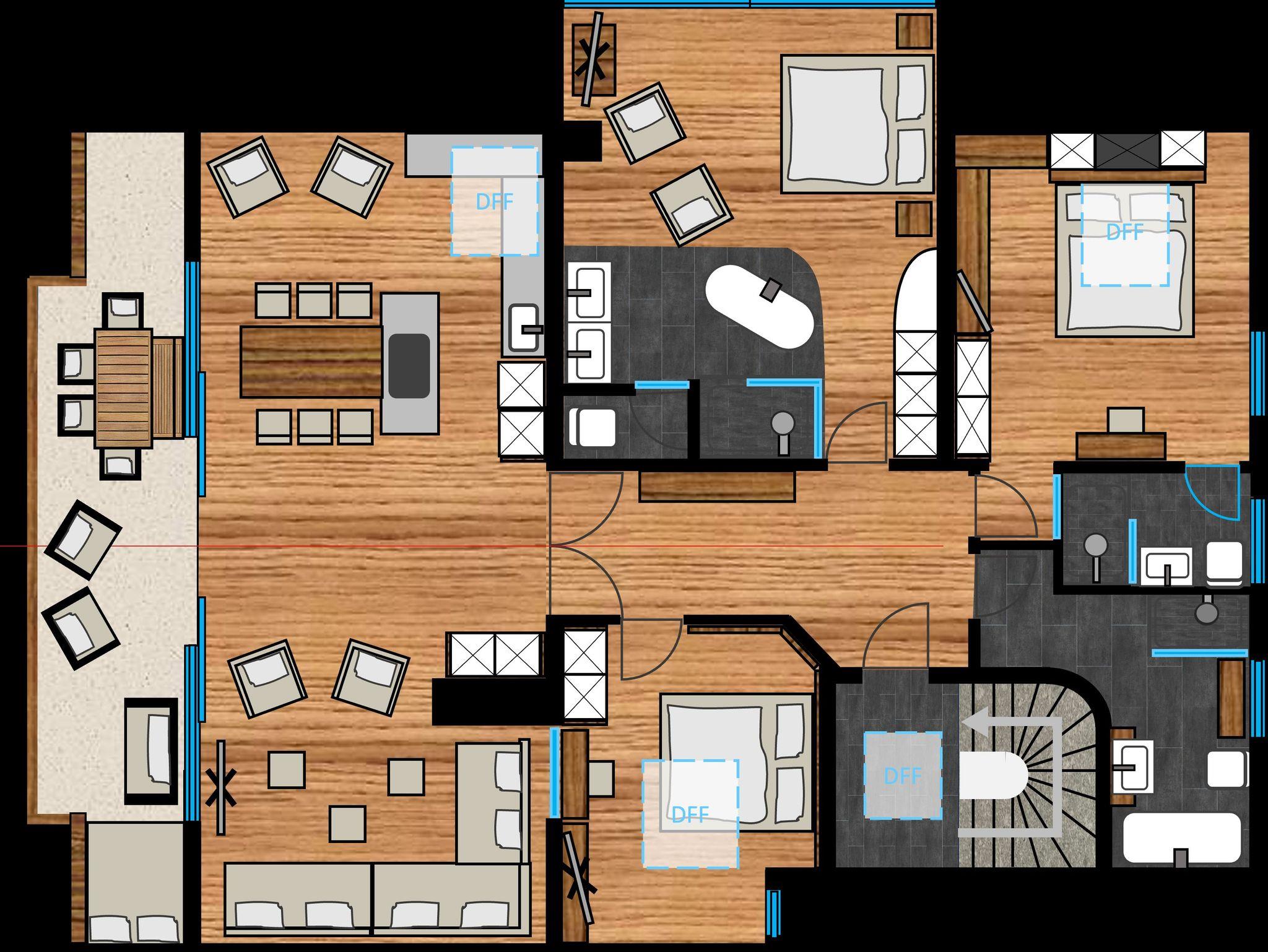In unsererm alpstyle-heaven, unserem luxuriösesten Apartments wird es an nichts fehlen. Mit 160m2 für bis zu 6 Personen bietet es 3 Schlafzimmer, eins mit Blick auf den Himmel und zwei mit atemberaubendem Blick auf den Zahmen Kaiser. 3 Badezimmer, ein atemberaubender Ausblick von Wohn und Eßbereich über Berge und Wiesen werden von einer erstklassige ausgestatteten Küche inkl. Bora Herdplatte/Grillfläche ergänzt. Der große Kühlschrank inkl. Frischhaltefächer, Tiefkühlfach wird nur vom separaten Weinkühlschrank übertroffen. Bei gutem Wetter findet das Essen geren auf dem Balkon statt und am Abend laden die gemütlichen Liegen (Regen geschützt) zum Fletzen und genießen des Abends auf dem Balkon ein. Mehr geht nicht im Urlaub. Der große Fitnessbereich, komplett neuer Wellenssbereich (inkl. Naturpool) und ein Kinoraum befinden sich zur freien Nutzung unten direkt im gleichen Haus. Hier bleiben keien Wünsche offen.