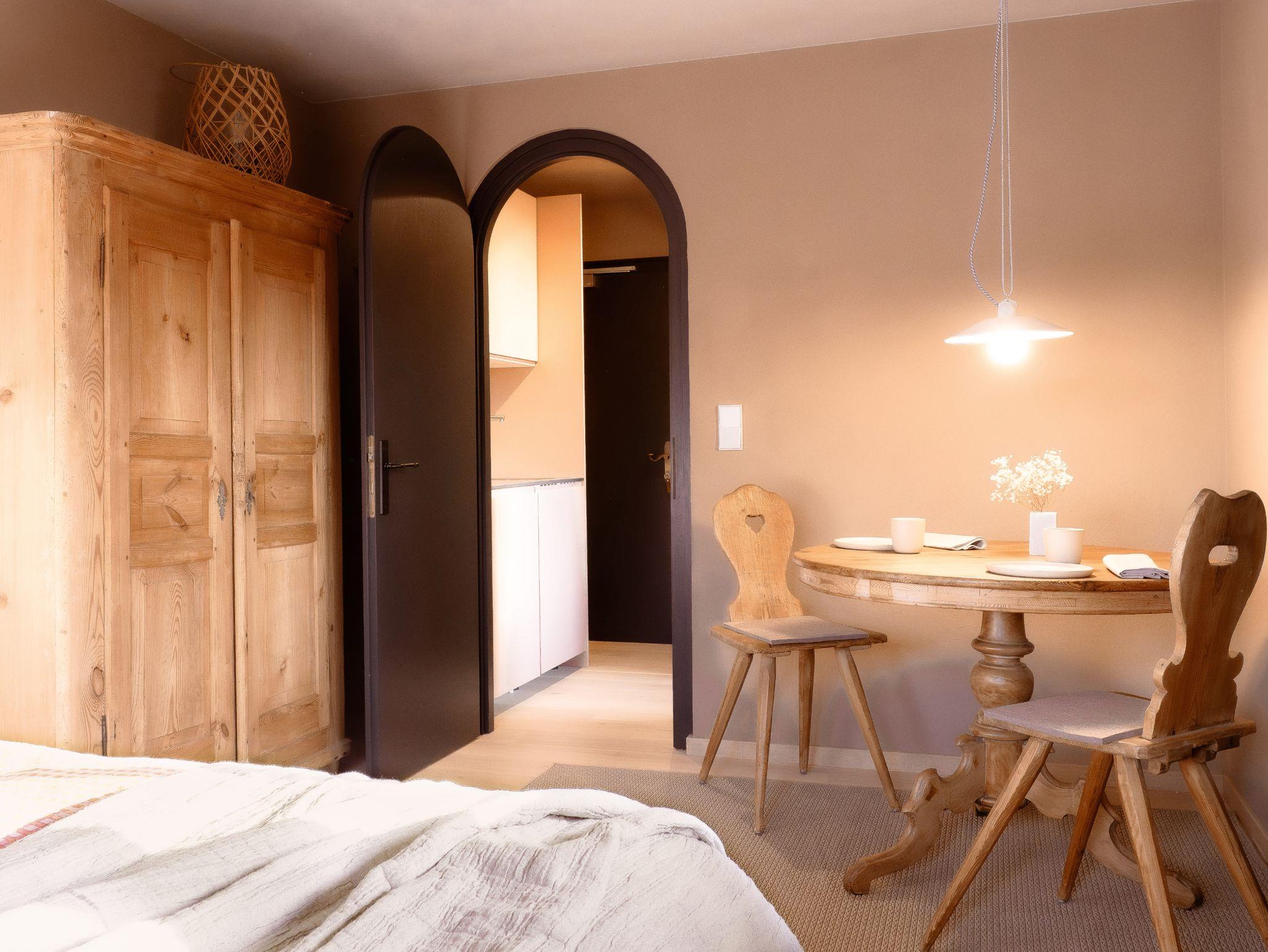 Das Haus, im Stil eines Tiroler Landhauses, befindet sich in einer ruhigen Seitenstraße und bietet Blick auf die beeindruckende Bergkulisse von Fellhorn und Zahmer Kaiser. Alle exklusiv eingerichteten Apartments verfügen über Boxspring-Betten, ein oder zwei Flat-Screen-TVs, eine gut ausgestattete Küchenzeile, Espresso-Maschine mit Bio-Kapseln, alten Bauernmöbeln, sowie einer Grundausstattung an Handtüchern und Bettbezügen. Die stilvoll ausgestatteten Bäder verfügen über Dusche, WC, große Spiegel und Stein-Waschbecken sowie teilweise über Badewanne, Handtuch-Heizkörper und Fußbodenheizung. Unser Wasser ist reinstes Quellwasser. Alle Apartments haben einen möblierten Balkon mit Bergblick oder eine ausgestattete Terrasse mit privatem Gartenanteil.