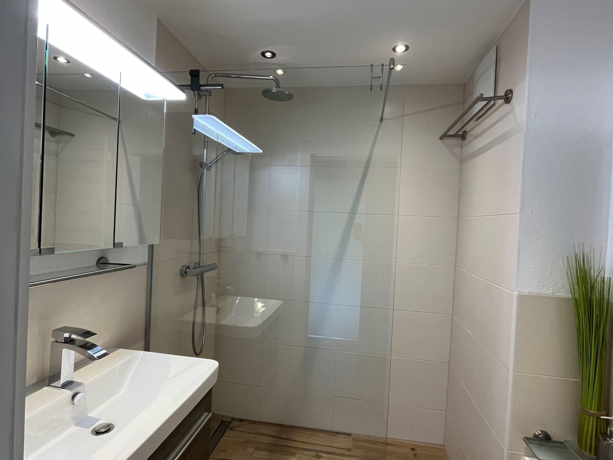 Die 85 m² große Wohnung befindet sich im 2. Stock des Hauses „St. Sebastian“ im Ortsteil Groißenbach. Sie wurde von uns 2013 übernommen, renoviert und modern eingerichtet. Zwei Schlafzimmer, jeweils mit Doppelbett, bieten Platz für 4 Personen. Im großzügigen Wohnraum ist die komplett ausgestattete Küche (Backherd, Spülmaschine, Kühlschrank, Kaffeemaschine, Toaster…) sowie eine Eßecke integriert. Das Bad ist mit begehbarer Dusche, Waschbecken und WC ausgestattet.