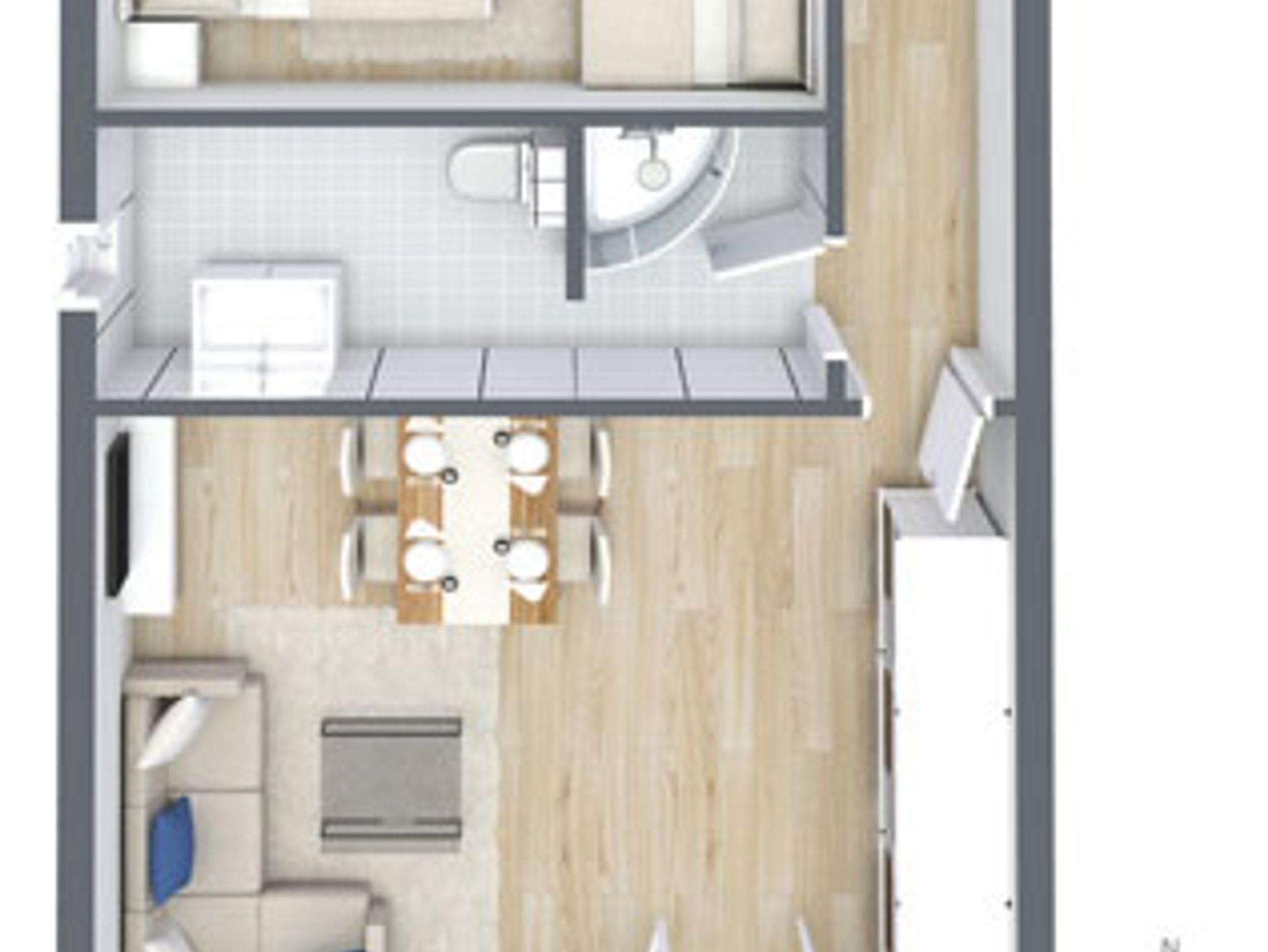 Diese Ferienwohnung mit 40m² bietet Platz für 2 Personen. Die Wohnung verfügt über ein Wohn-/Esszimmer (Essecke und gemütlicher Couchgarnitur) und ein separates Schlafzimmer mit Doppelbett. Zwei getrennte Badezimmer, Balkon, Kabel-TV, Telefon und Radiowecker gehören ebenfalls zur Ausstattung dieser Wohnung.